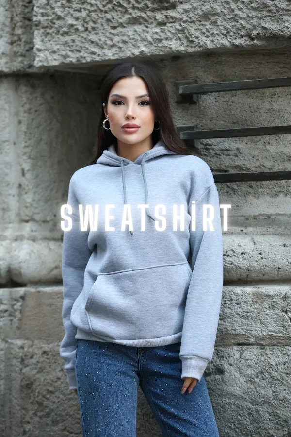 Kapüşonlu Fermuarlı Üç İplik Şardonlu Sweatshirt
