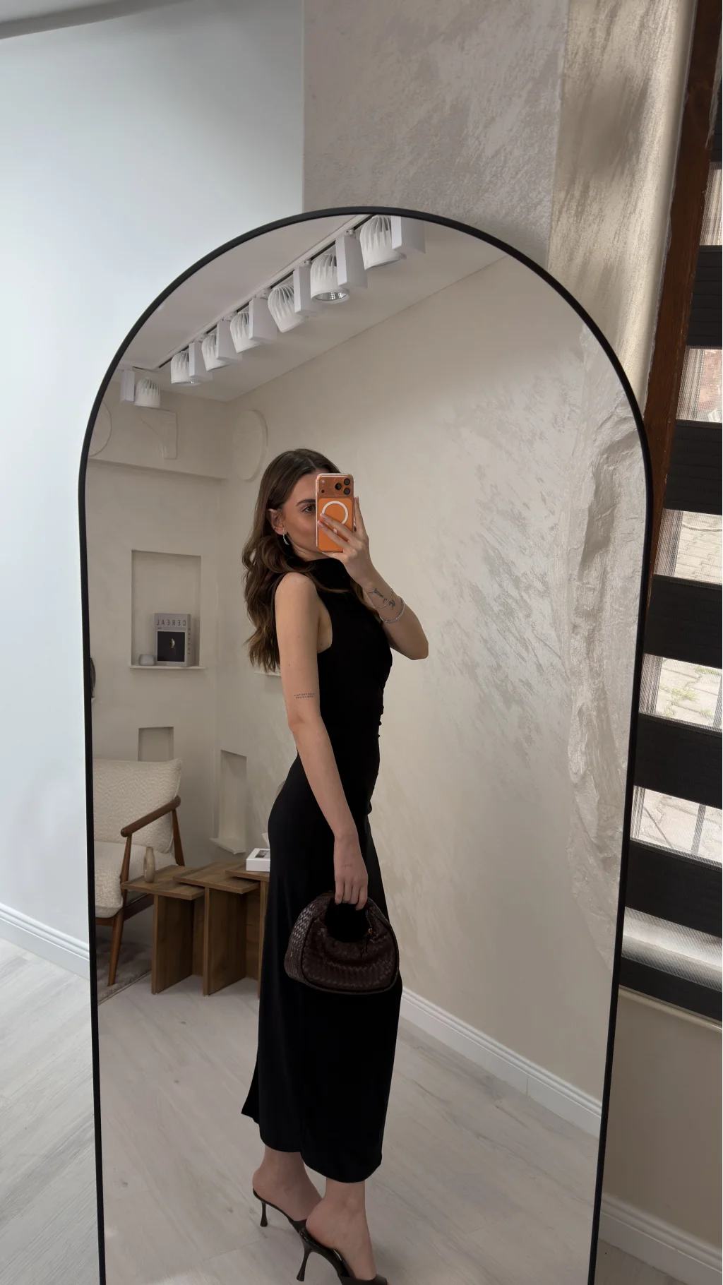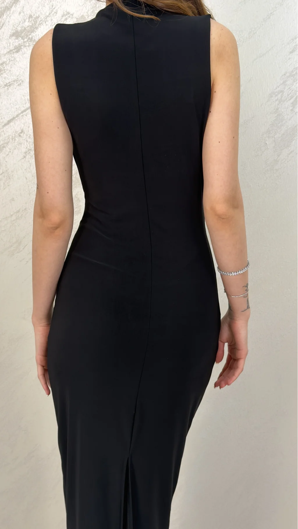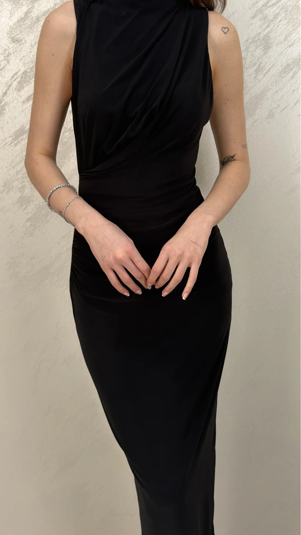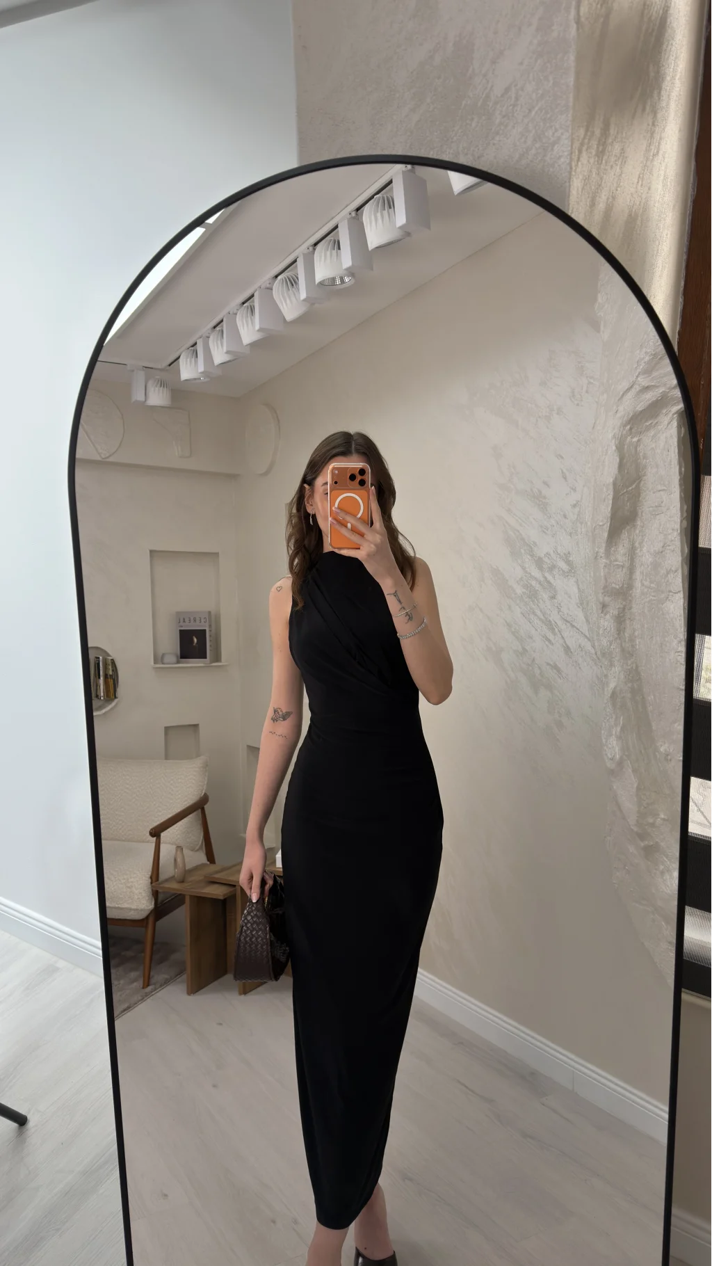 ARKASI YIRTMAÇLI DRAPELİ ELBİSE