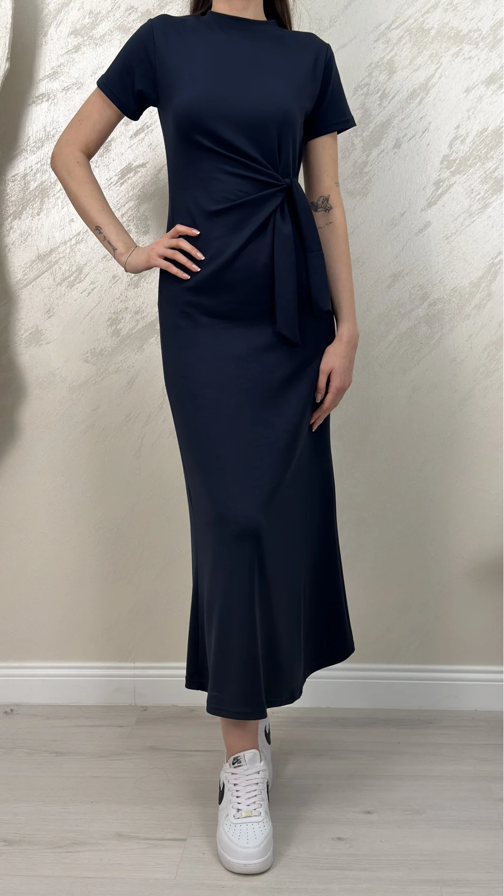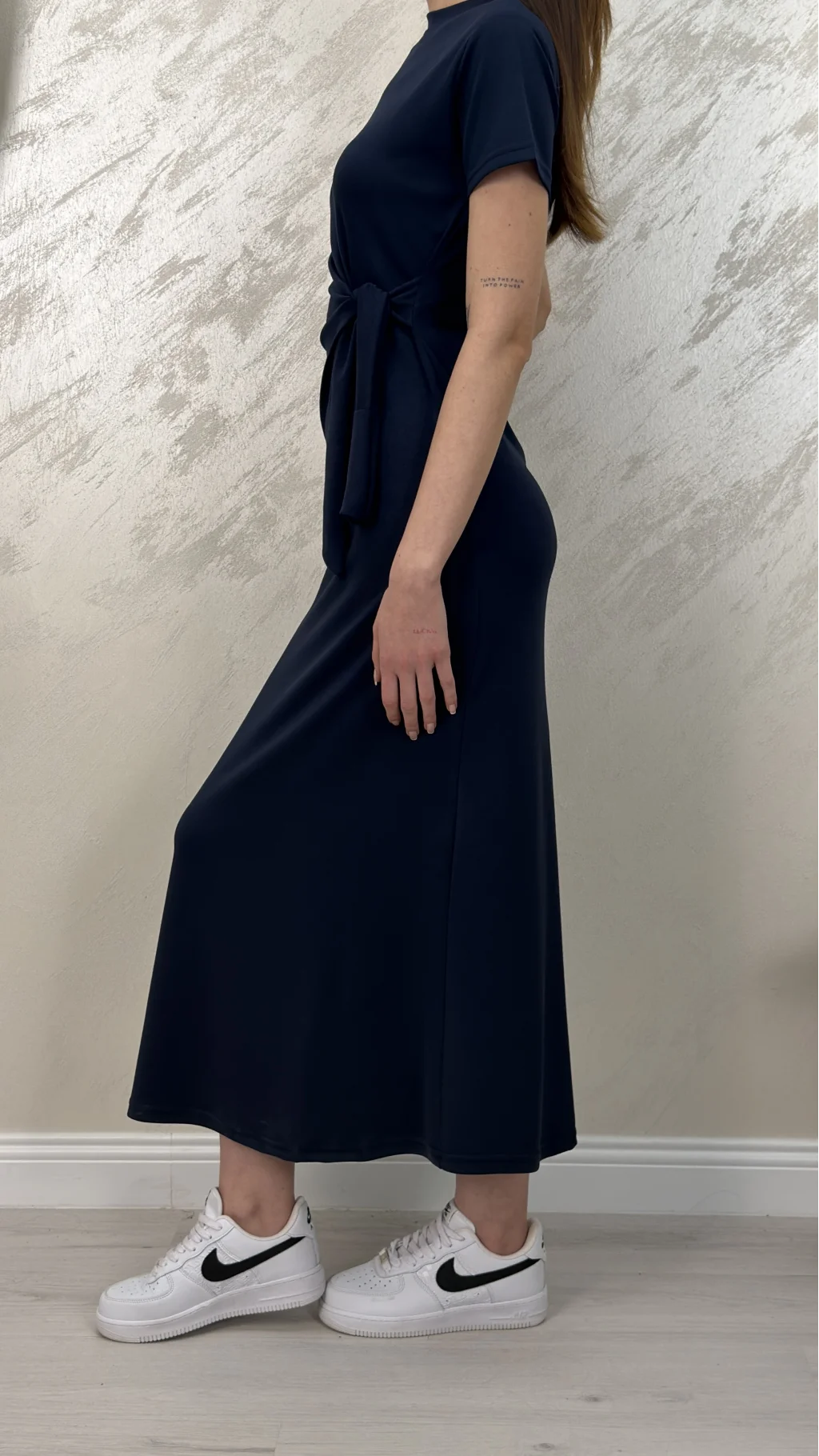 BELİ BAĞLAMALI MODAL KUMAŞ ELBİSE
