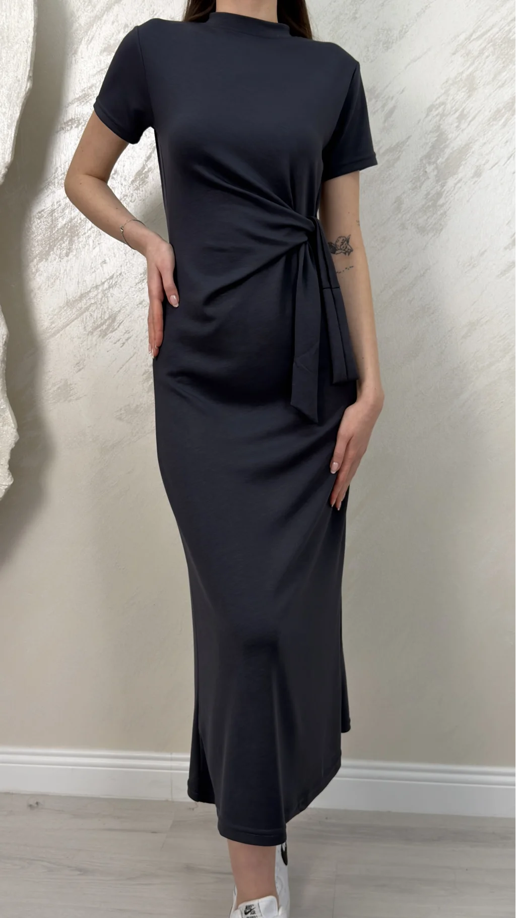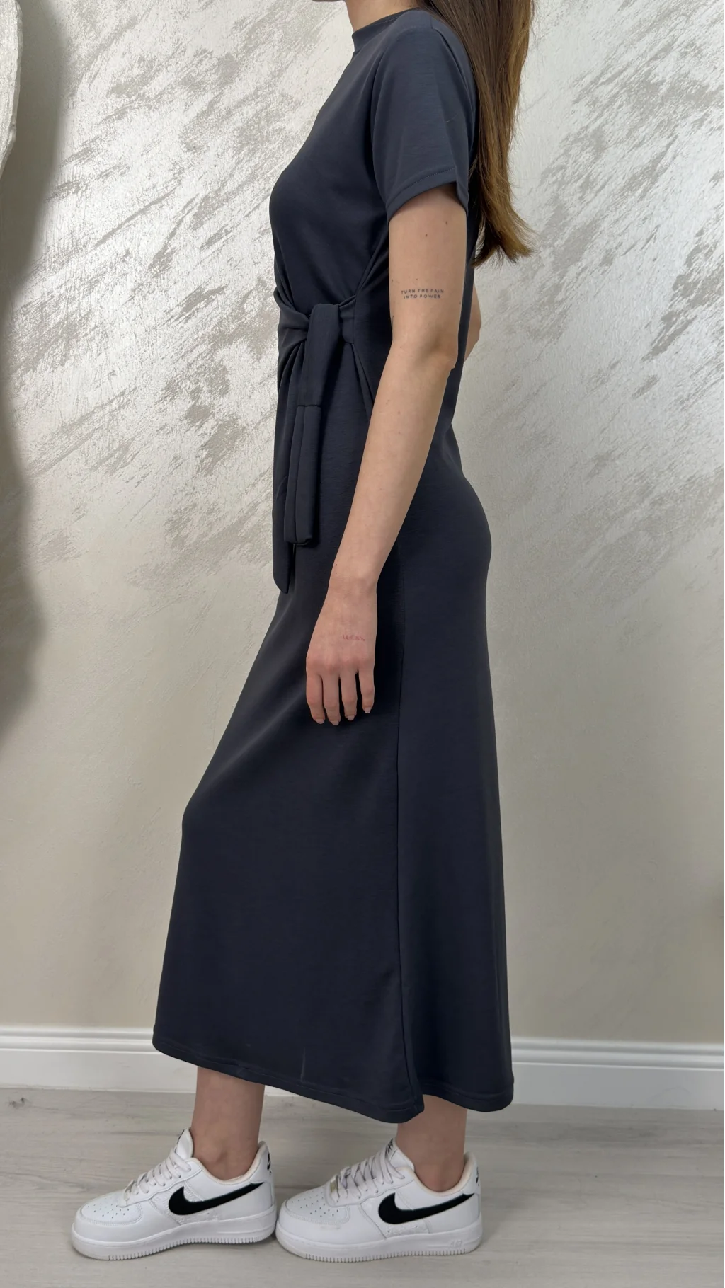 BELİ BAĞLAMALI MODAL KUMAŞ ELBİSE