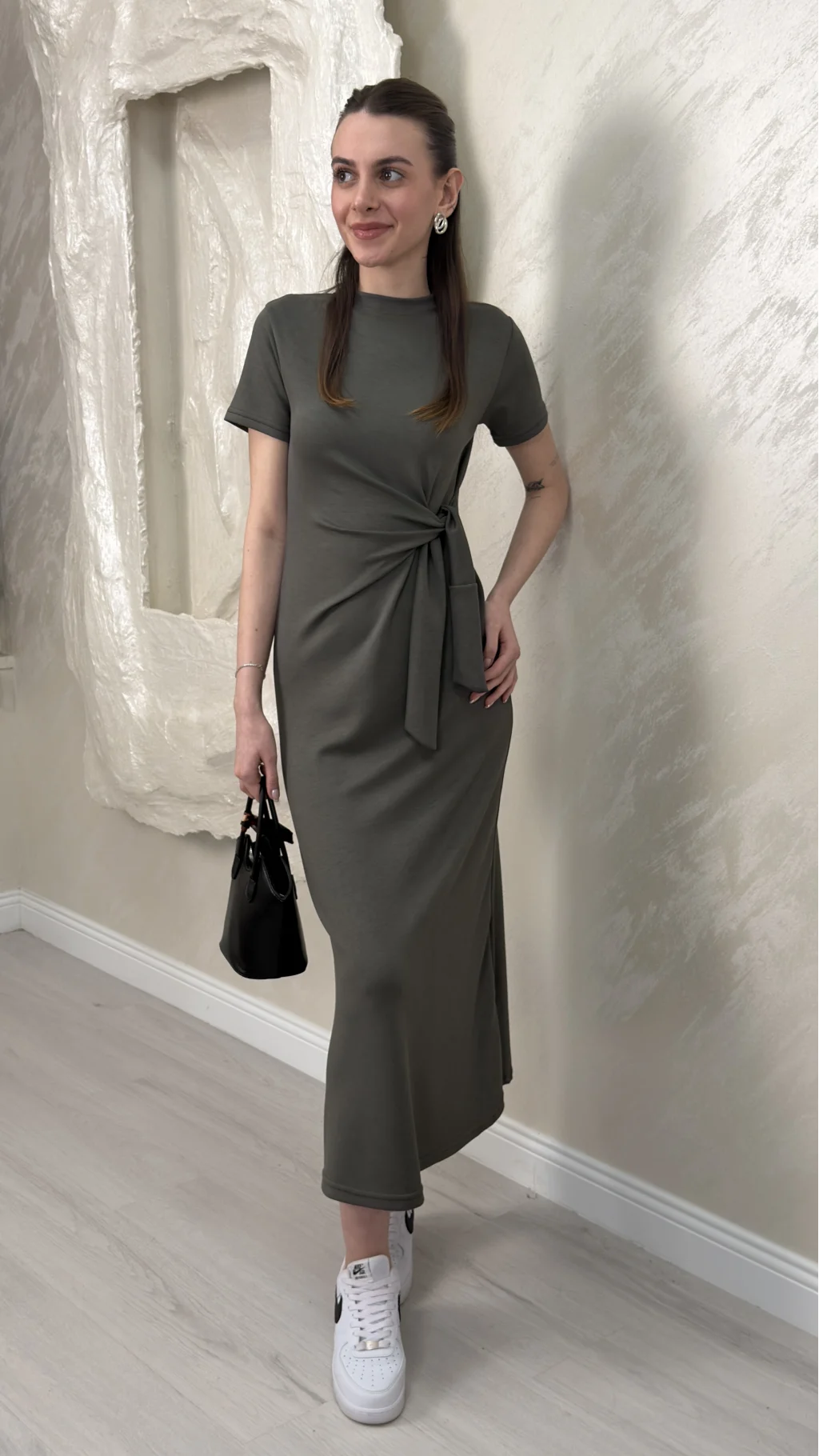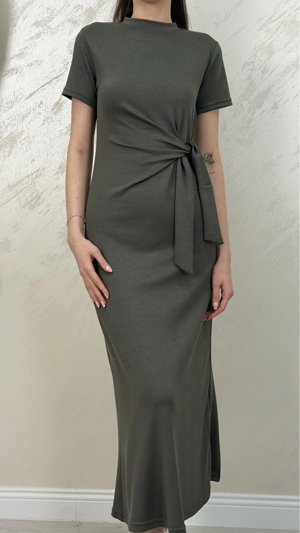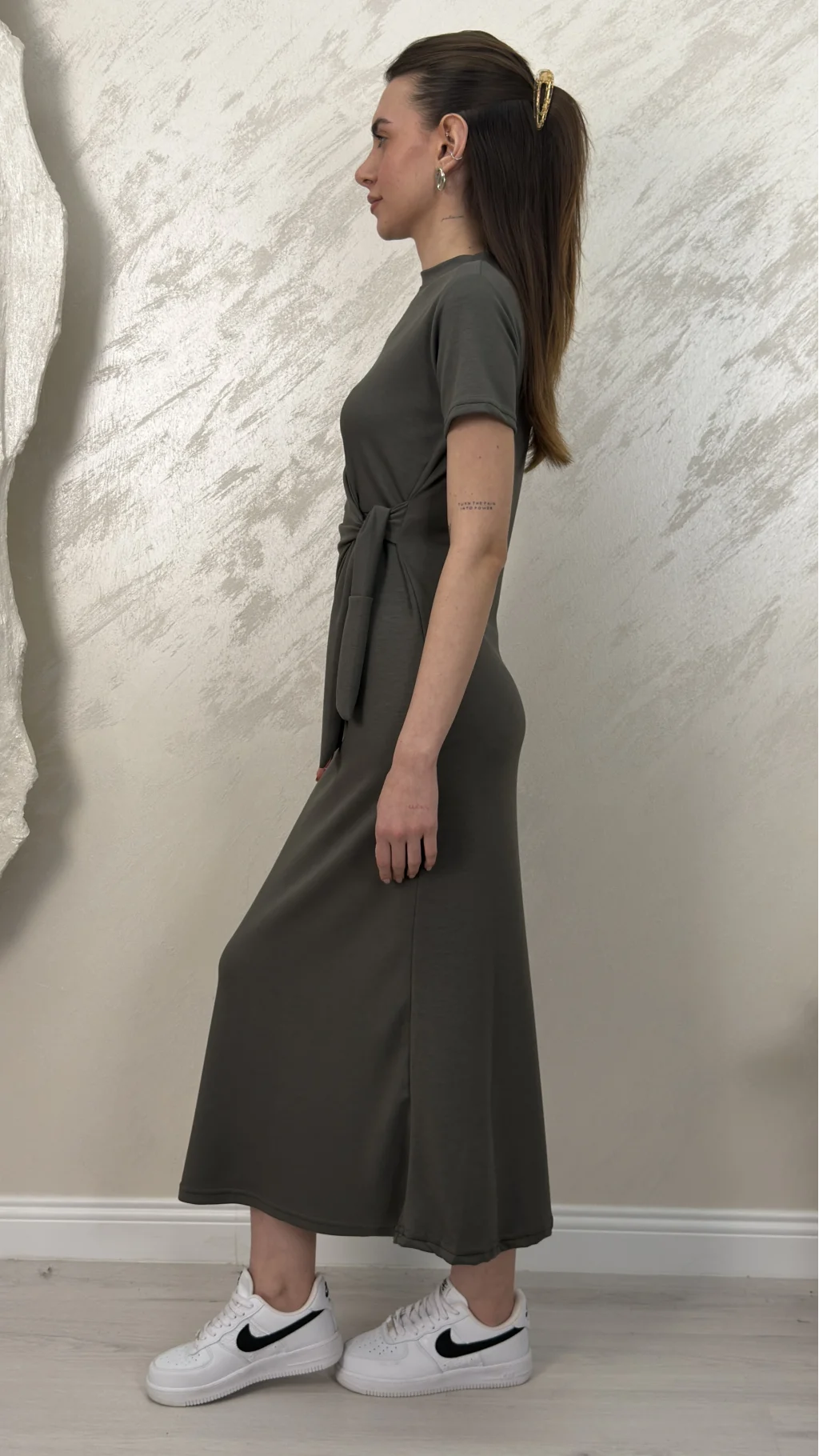 BELİ BAĞLAMALI MODAL KUMAŞ ELBİSE