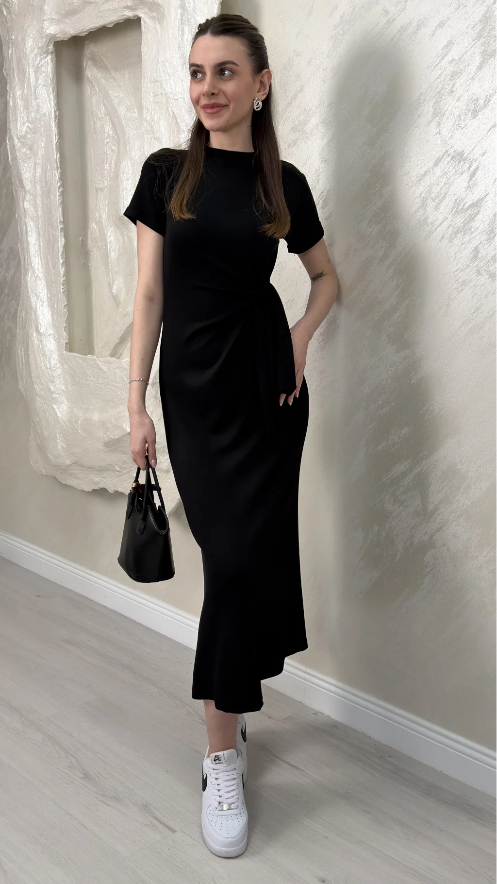BELİ BAĞLAMALI MODAL KUMAŞ ELBİSE