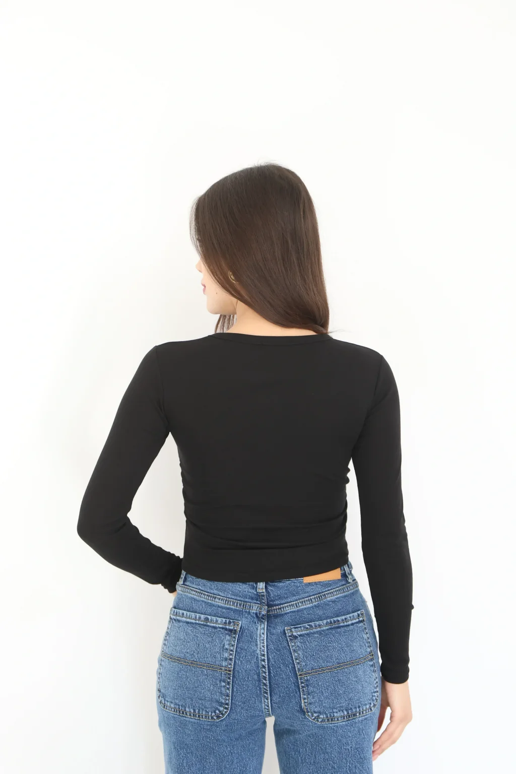 BİSİKLET YAKA UZUN KOLLU BLUZ - SİYAH