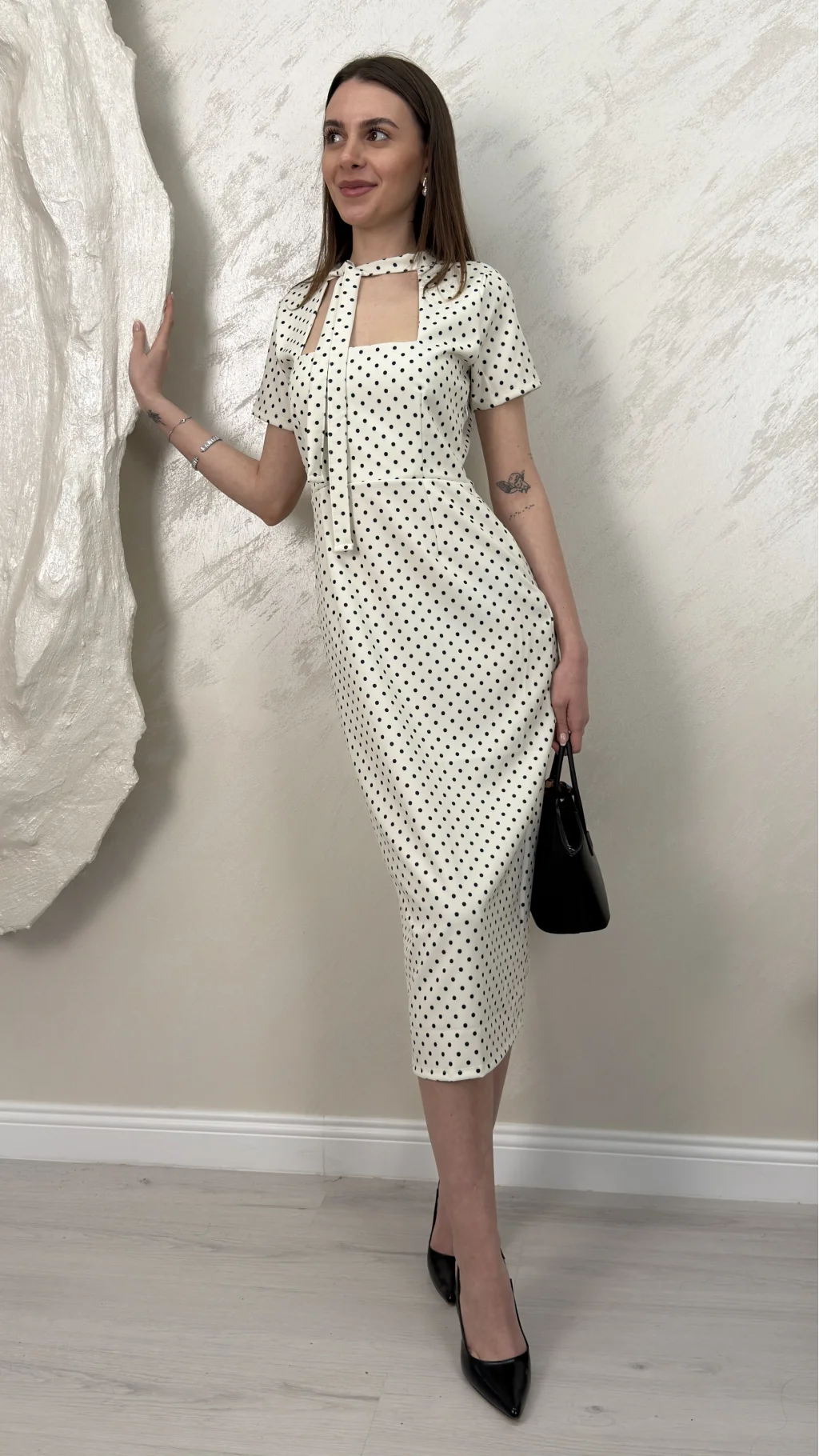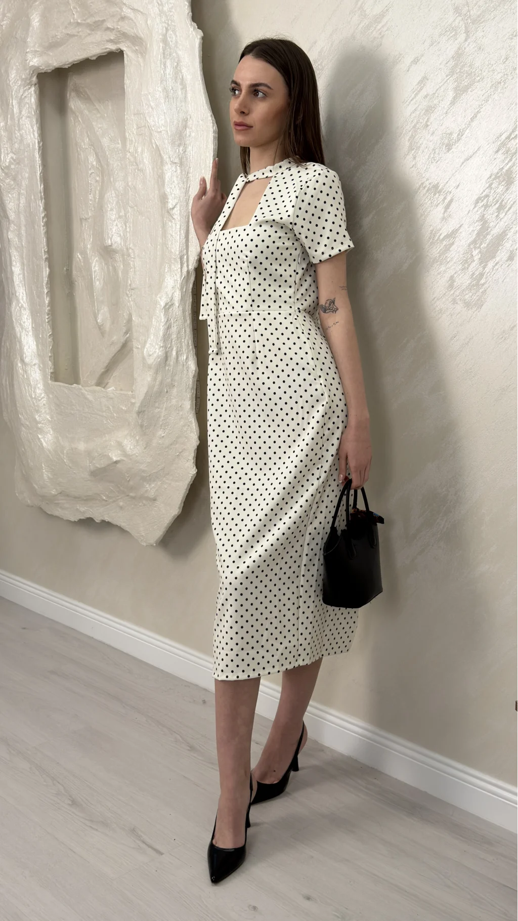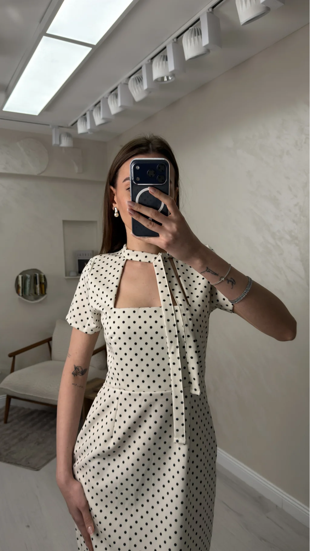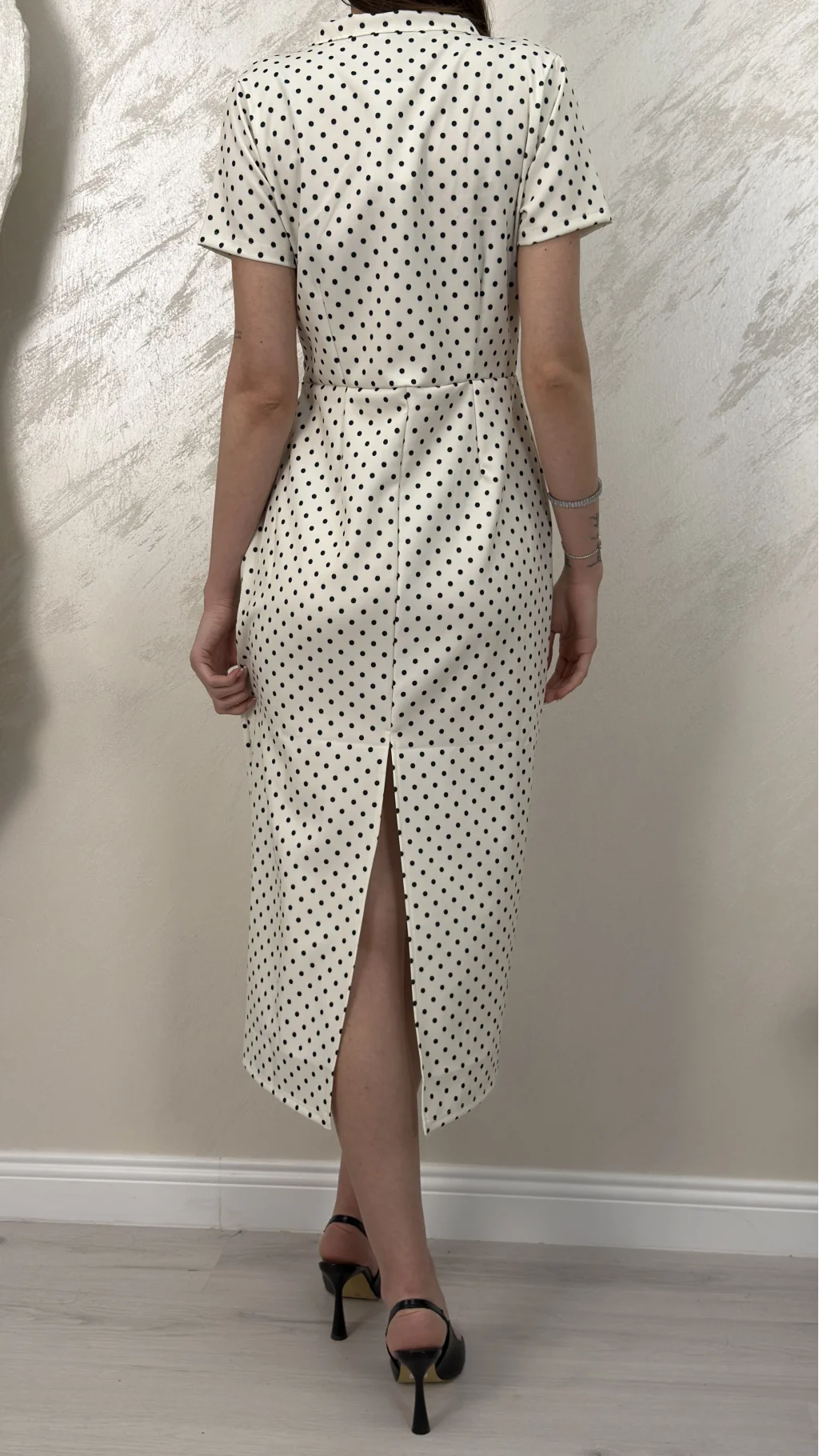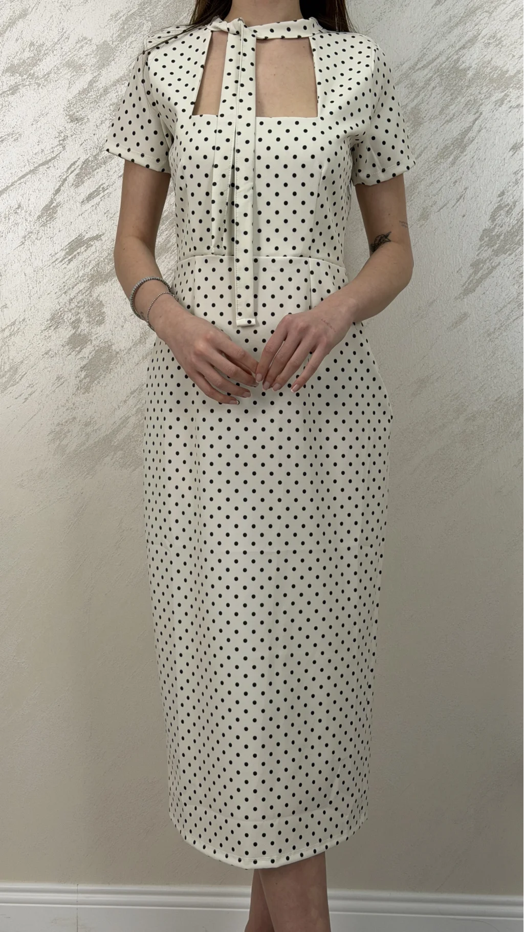 BOYUNDAN BAĞLAMALI PUANTİYELİ MİDİ ELBİSE