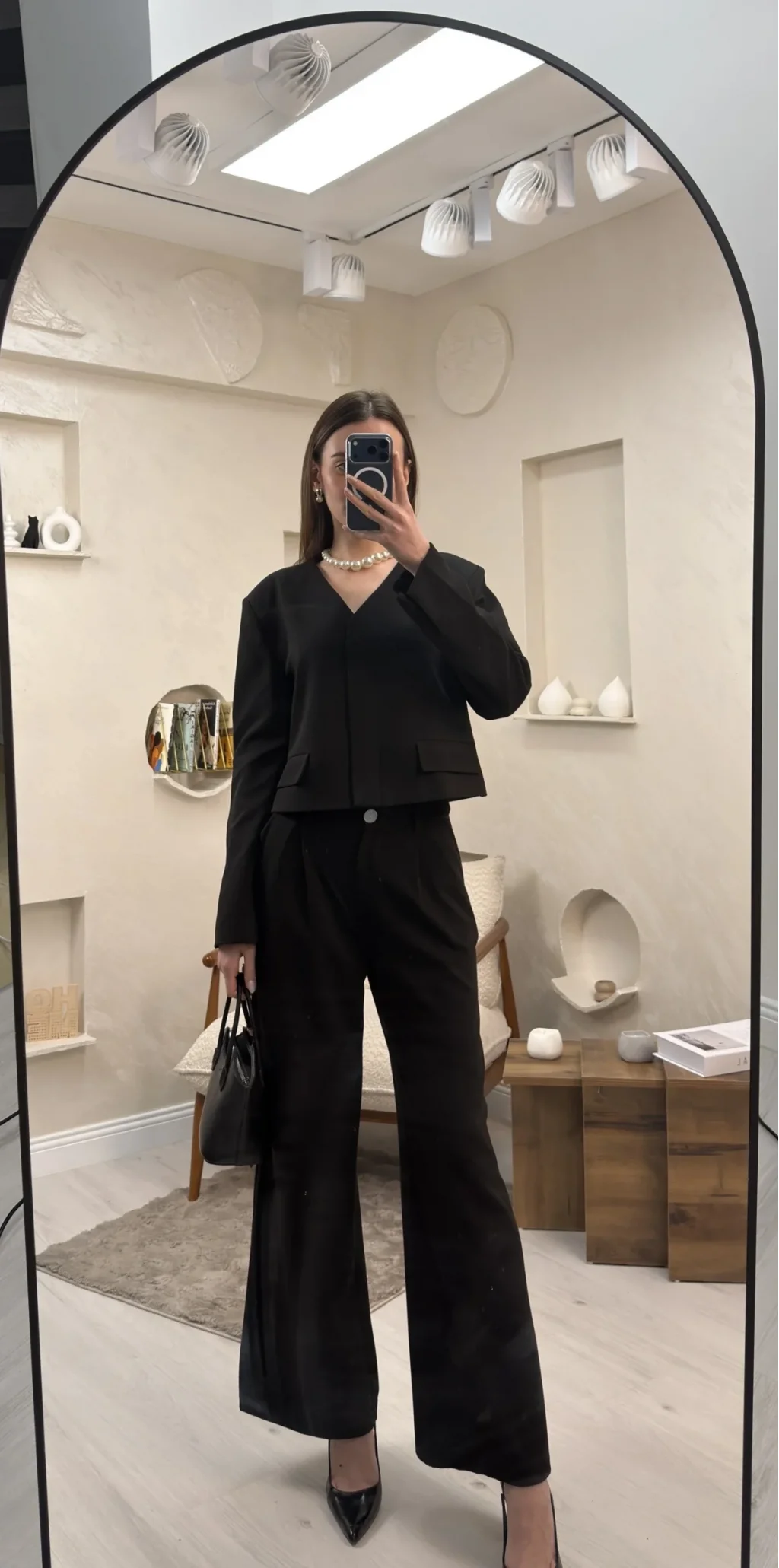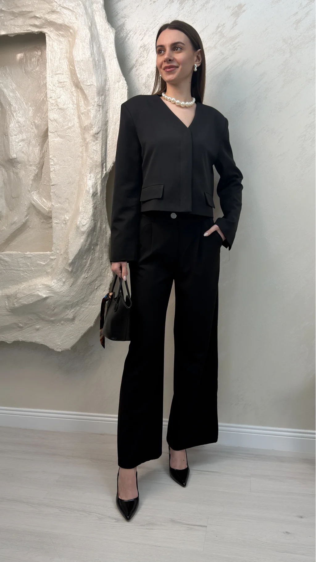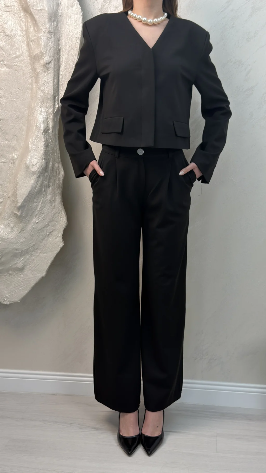 ÇİFT CEP CROP CEKET DETAYLI TAKIM