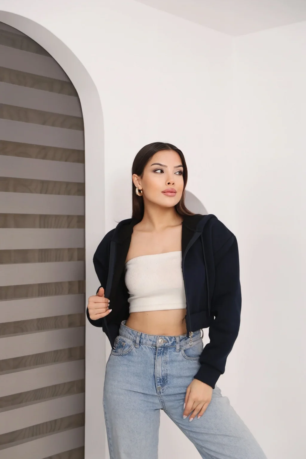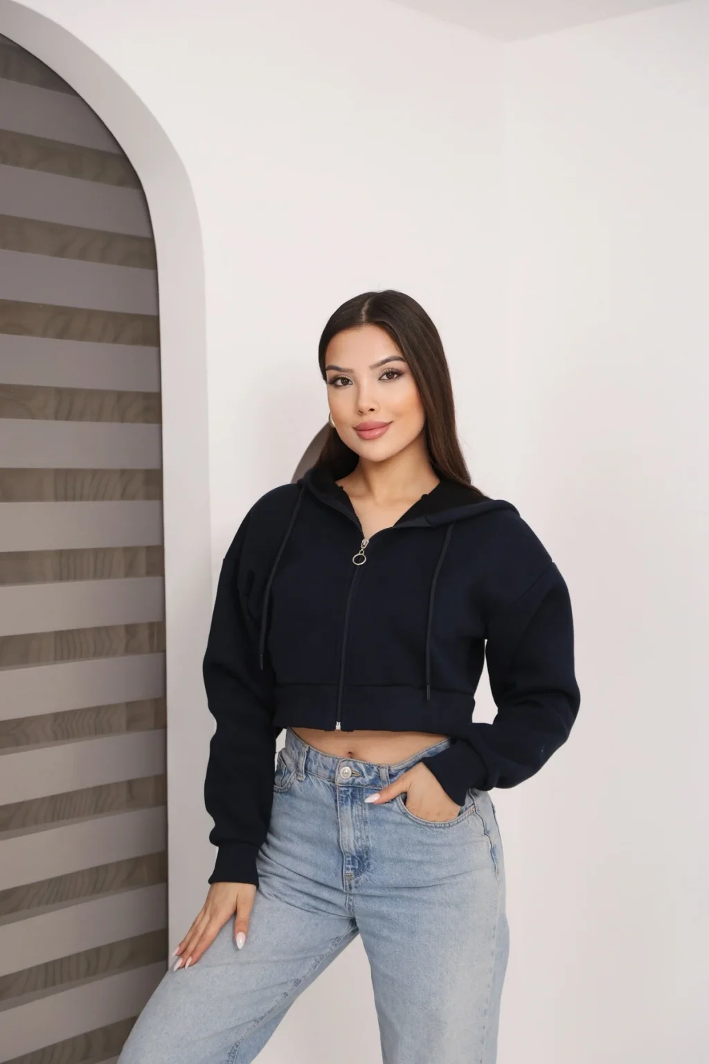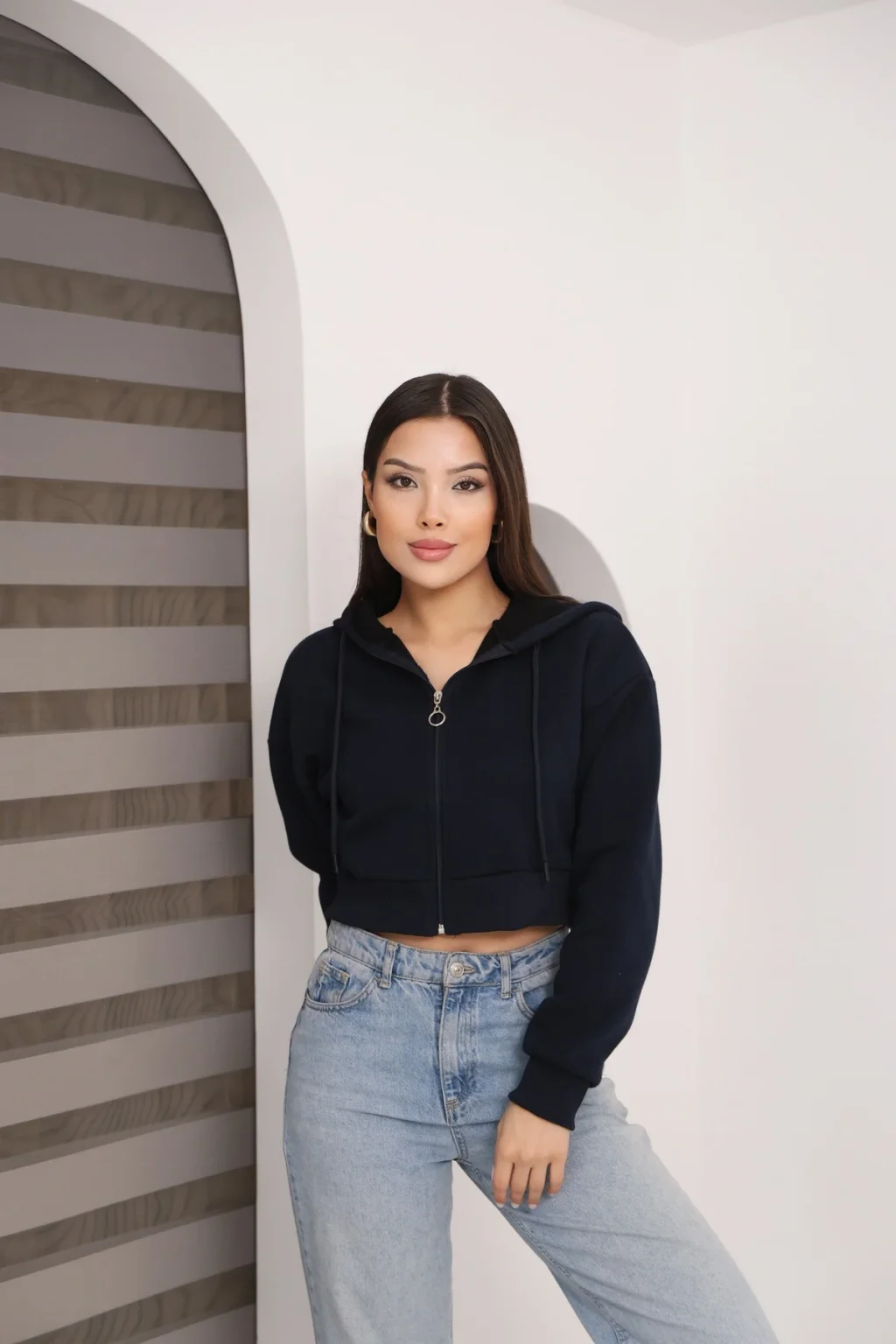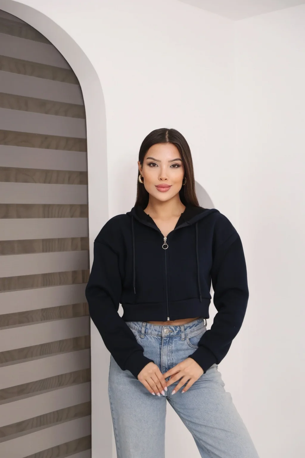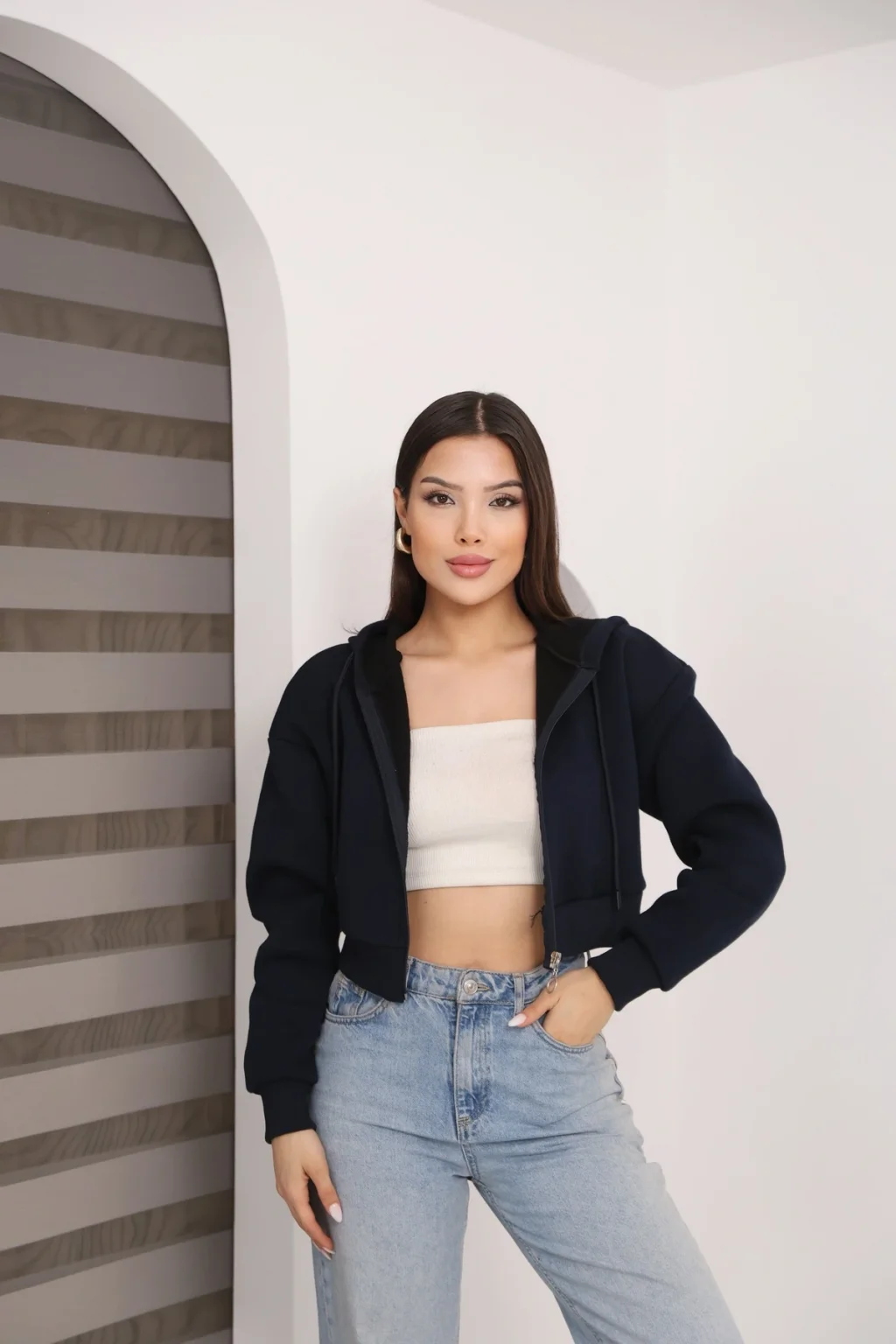 • • model: Kapüşonlu fermuarlı crop hırka