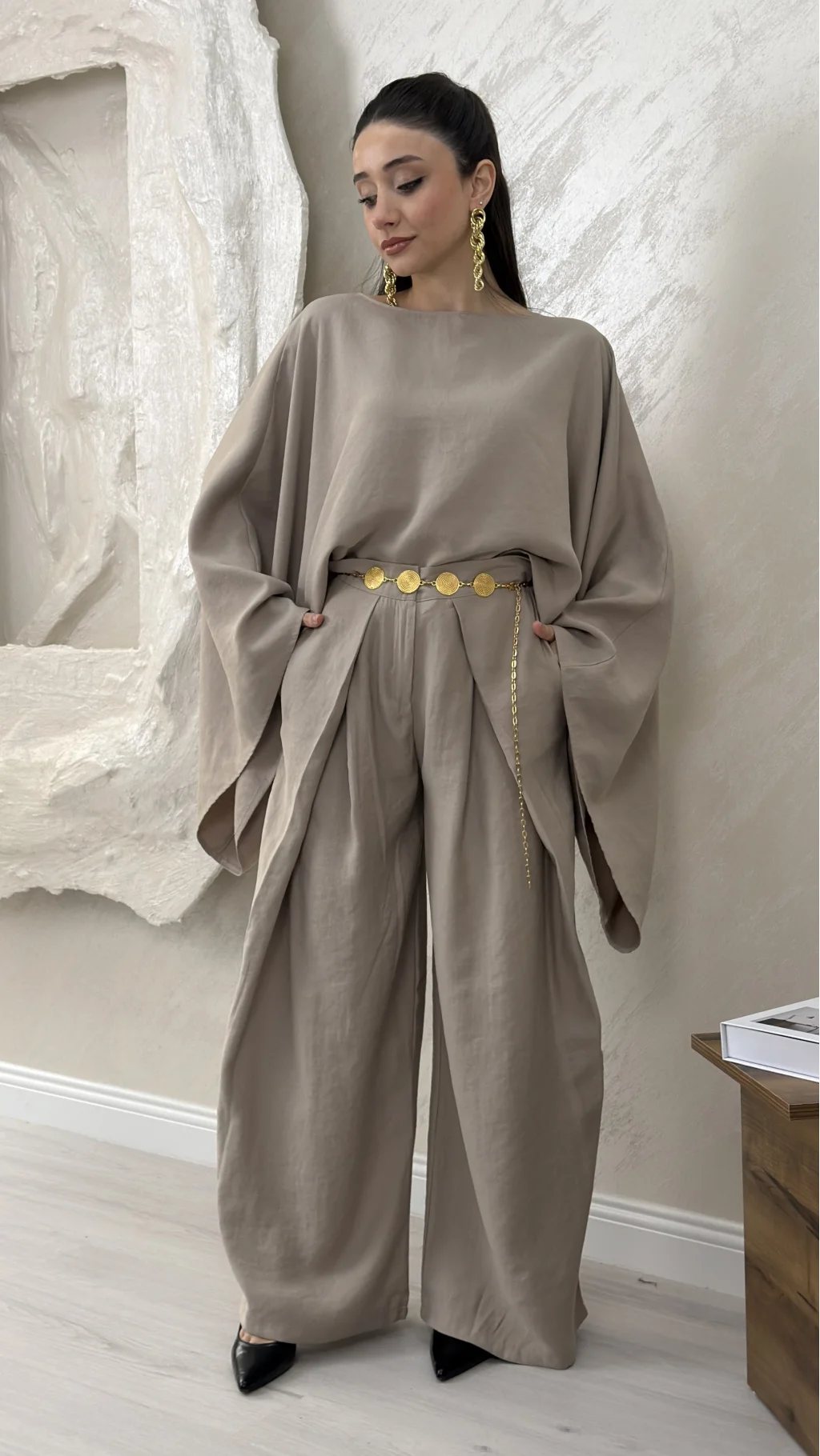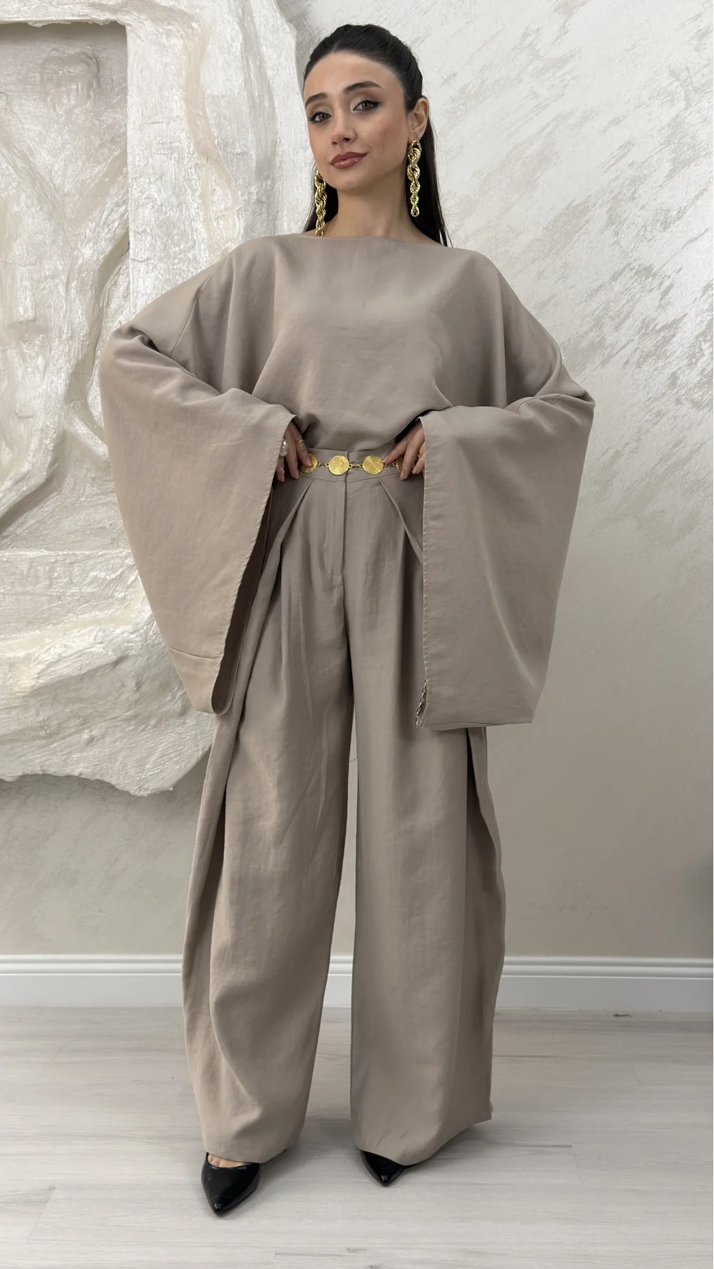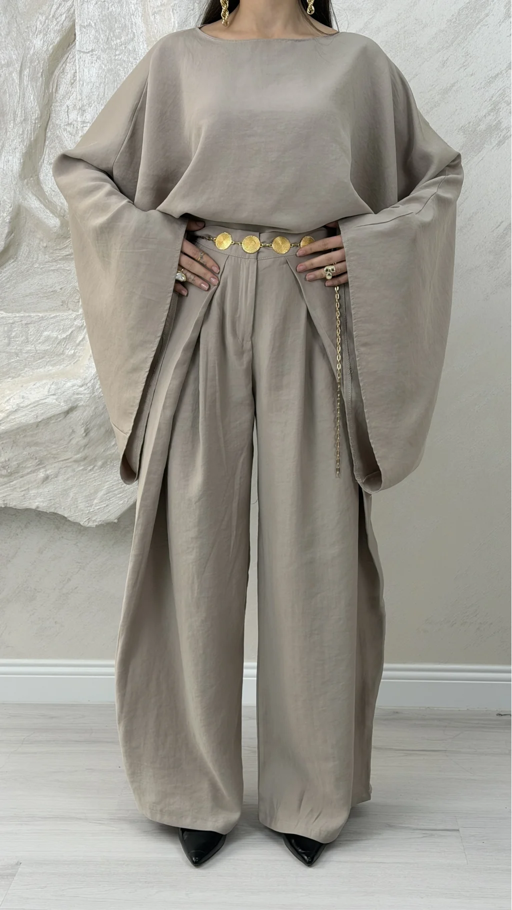 GENİŞ KOL BLUZ PİLELİ PANTOLON TAKIM