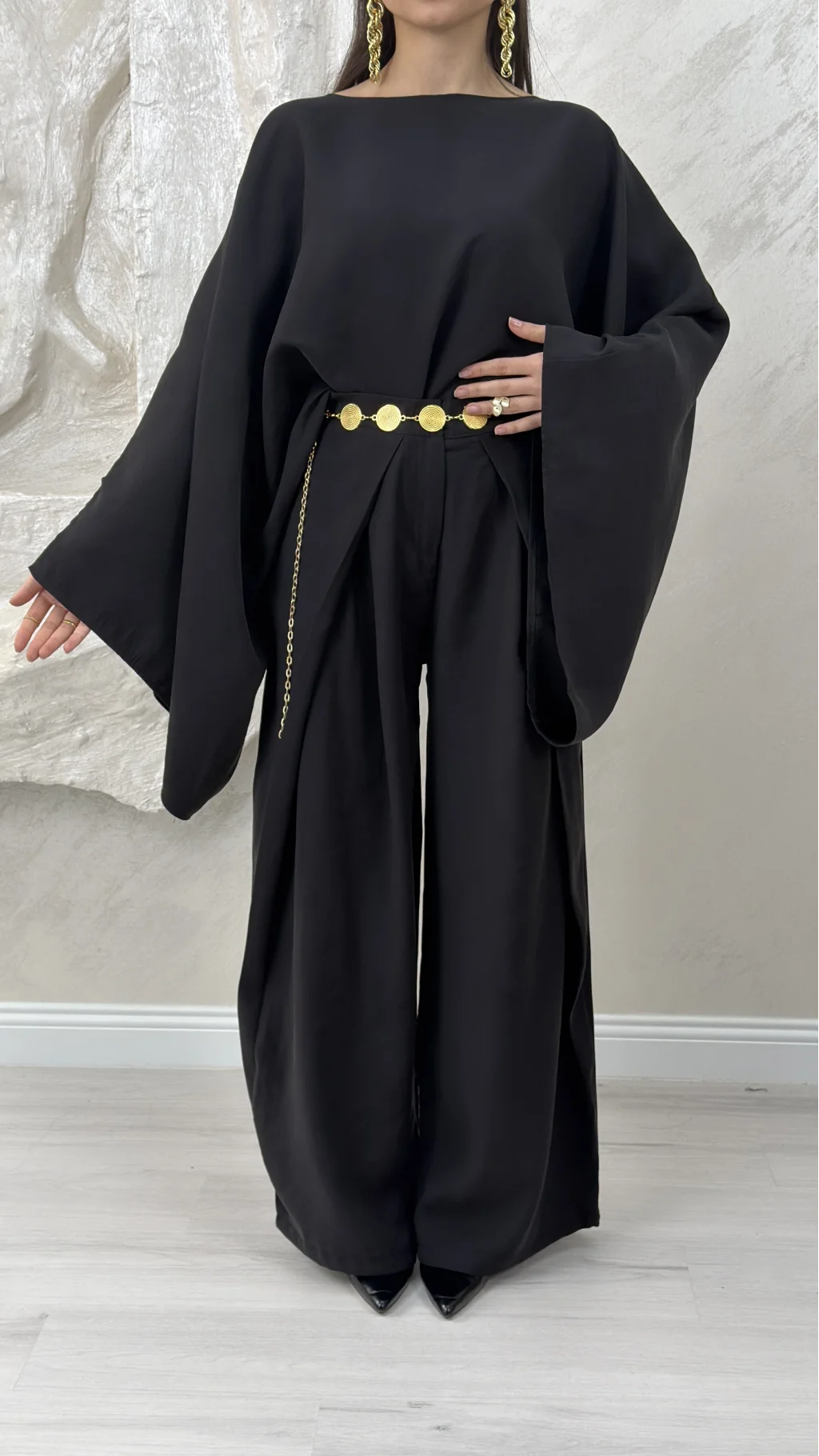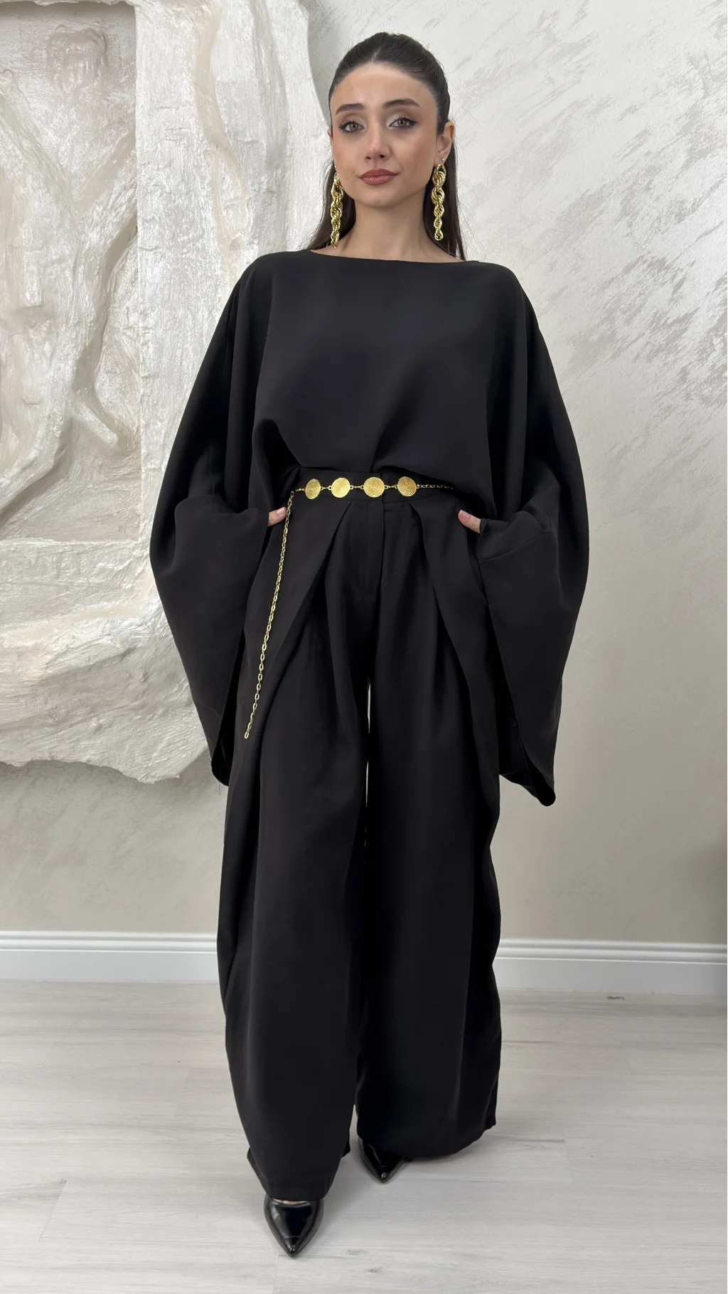 GENİŞ KOL BLUZ PİLELİ PANTOLON TAKIM