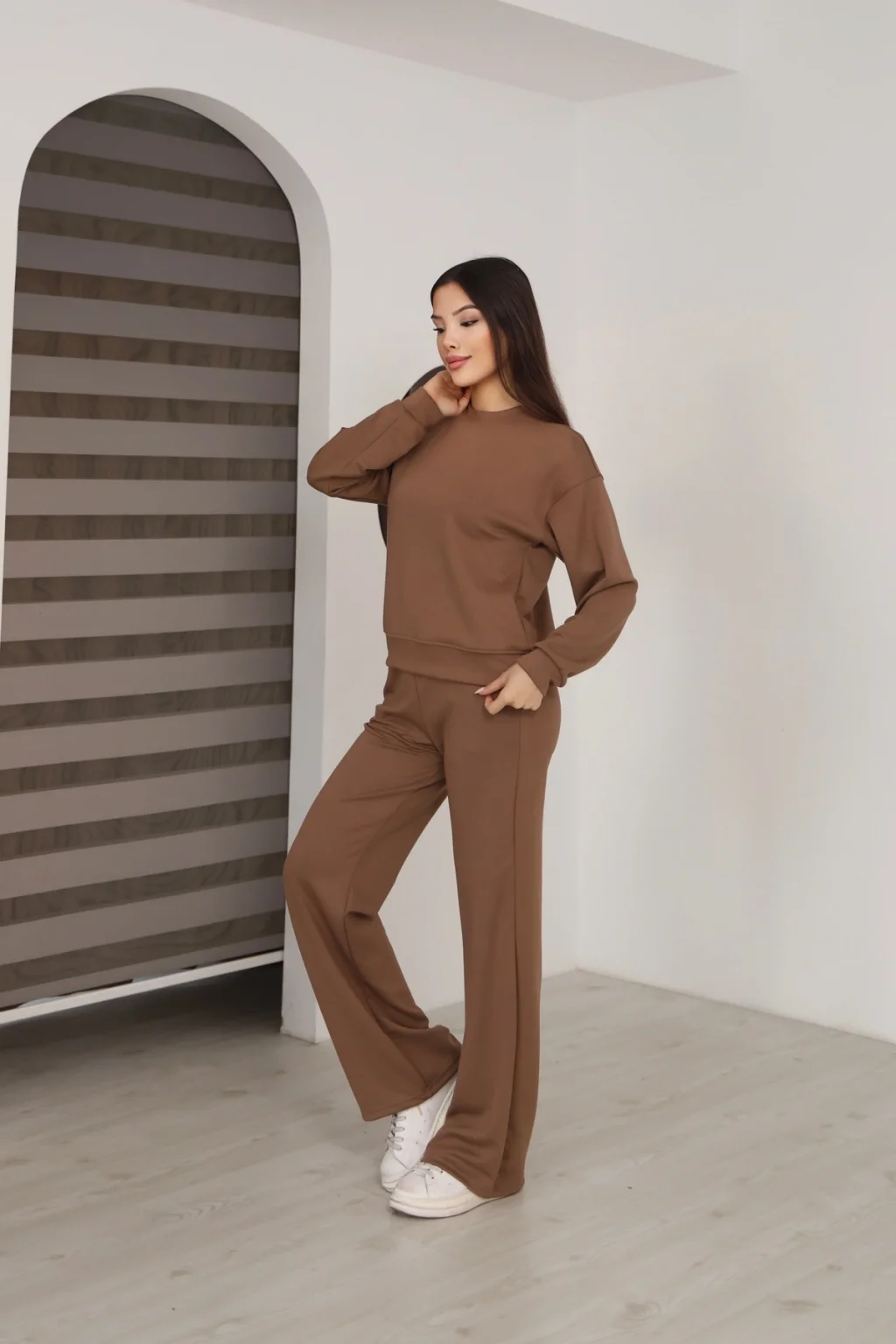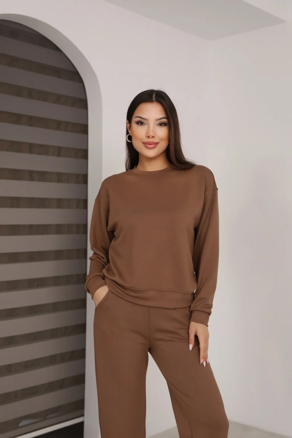 Yumuşacık dokusu ve yüksek konfor sağlayan modal kumaştan üretilmiştir. Modal kumaş; nefes alan, terletmeyen, dökümlü ve cilt dostu yapısıyla öne çıkar. Günlük kombinlerde hem rahatlık hem de şıklık sunar. Esnek yapısı sayesinde gün boyu konforlu kullanım sağlar.