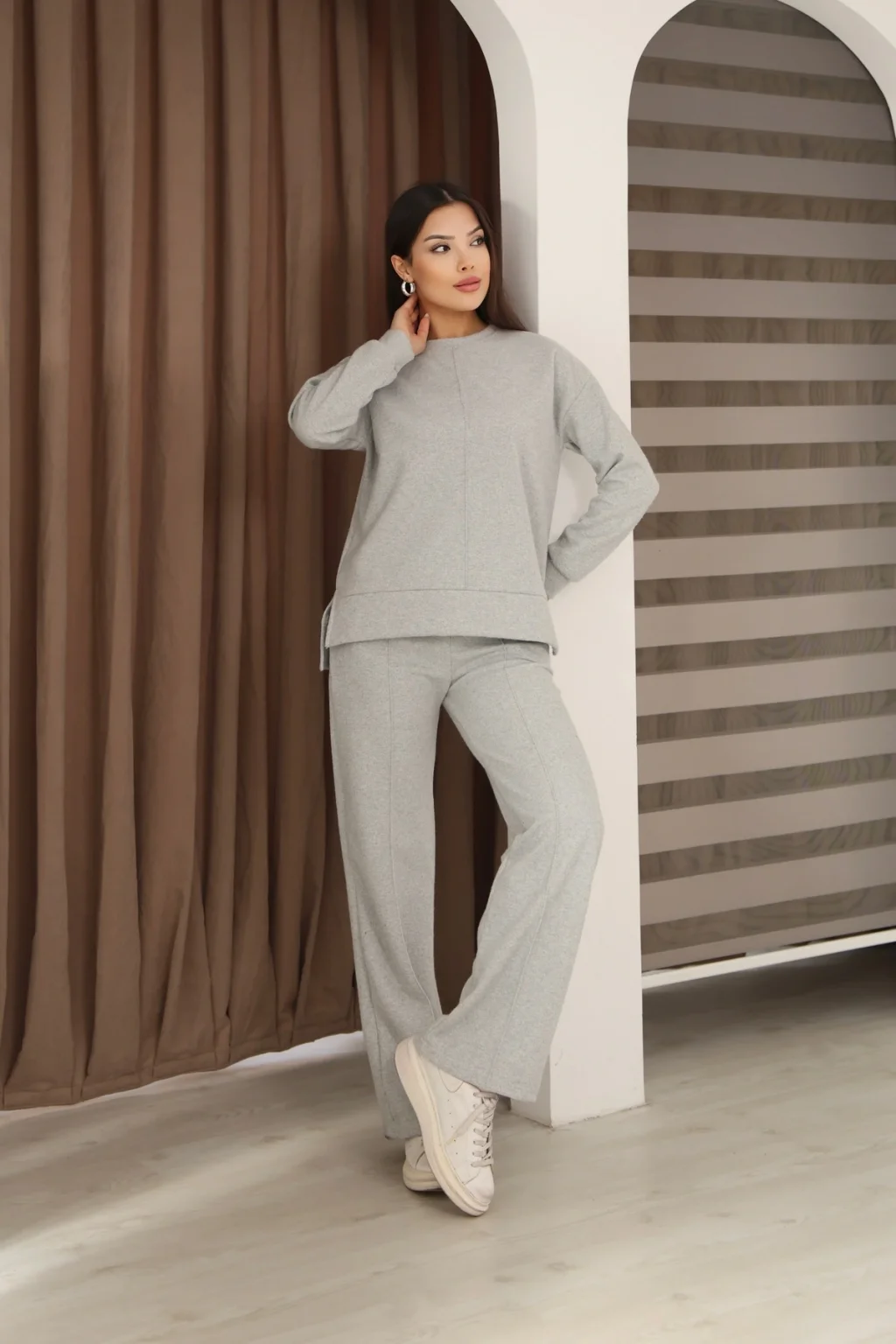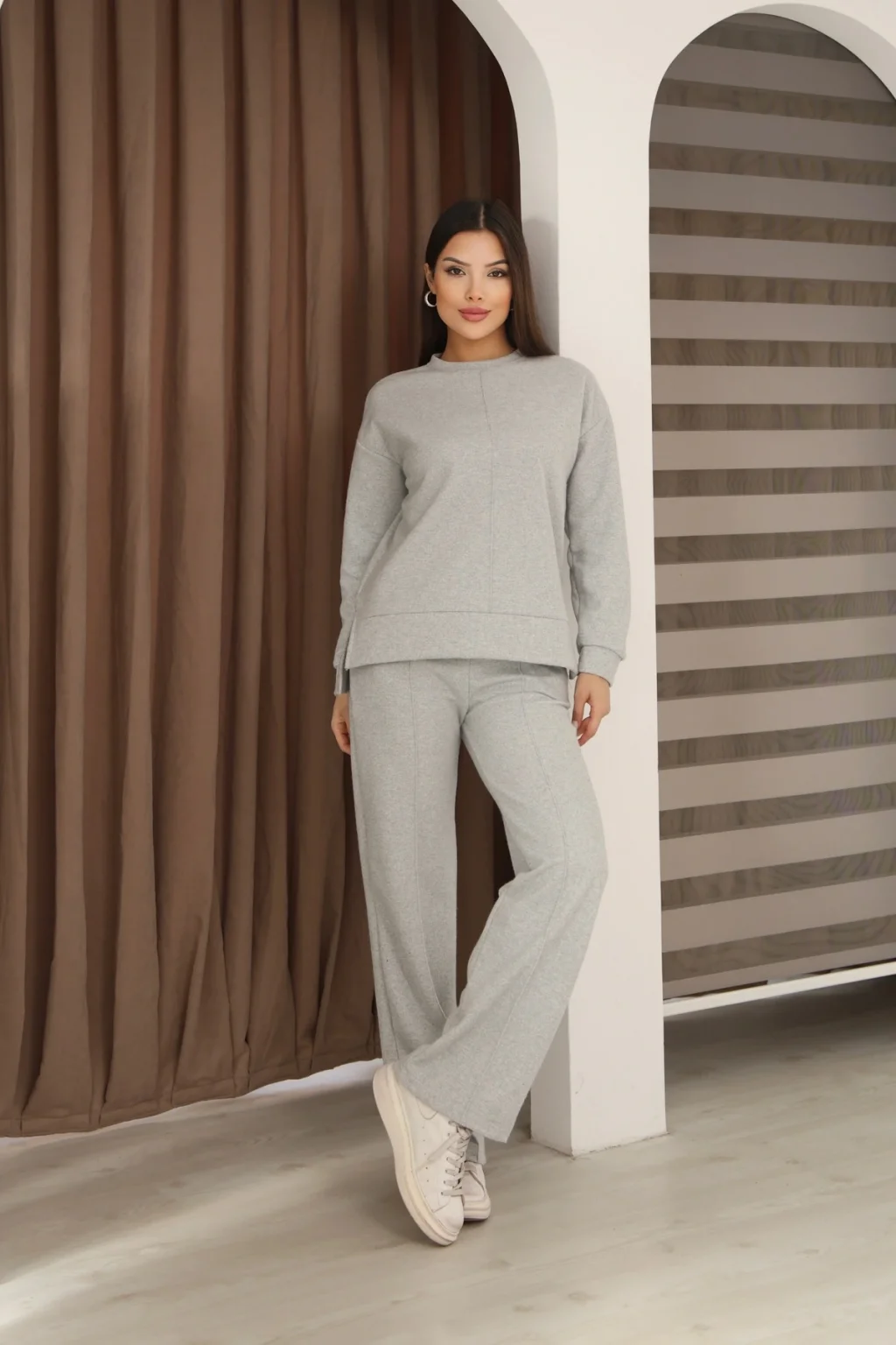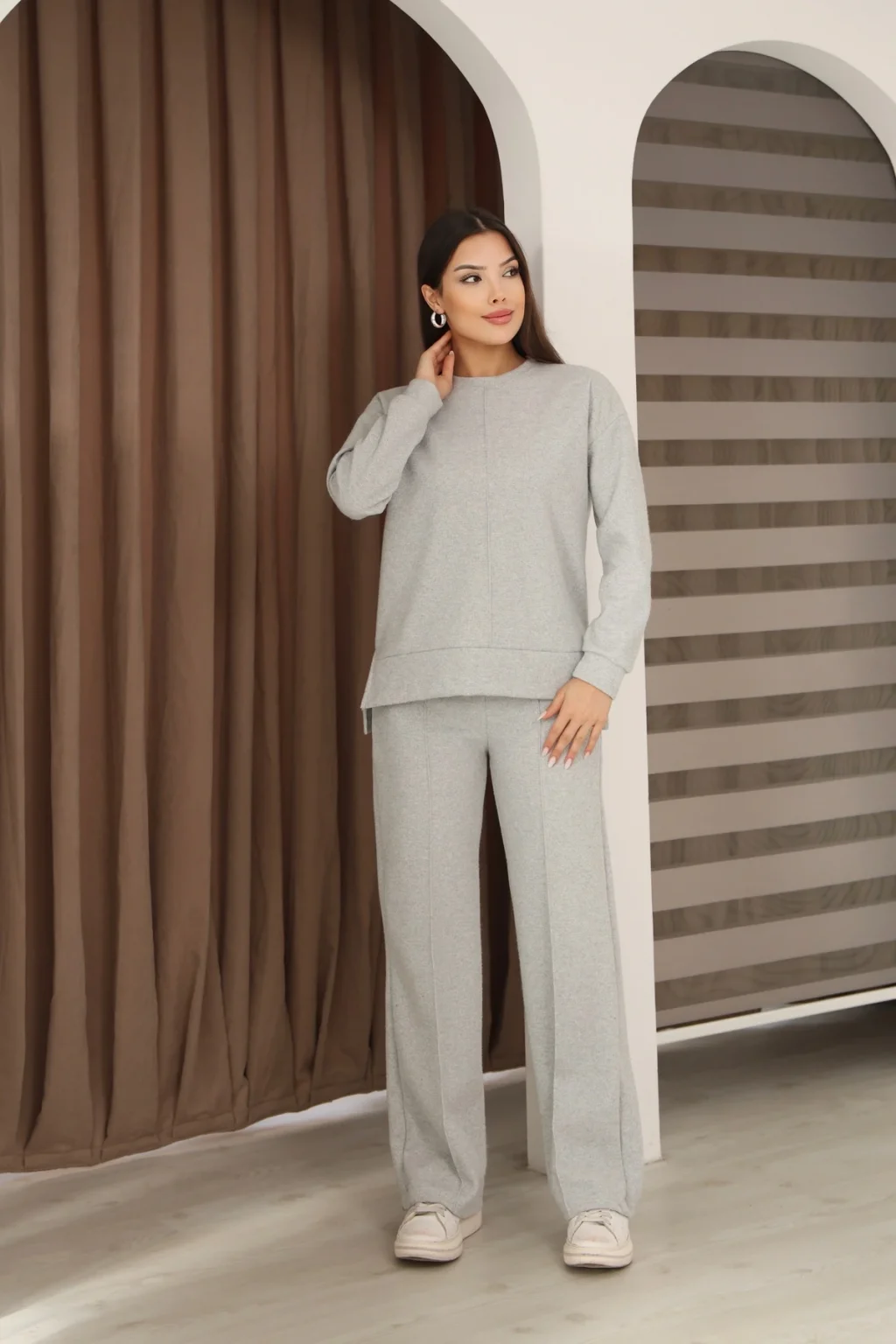 Yumuşak dokulu ve esnek yapıya sahip premium selanik kumaştan üretilmiştir.; Selanik kumaşın dokusu sayesinde hem sıcak tutar hem de nefes alır.; Çımalı tasarımı ile modern ve şık bir görünüm sunar.; Günlük kullanımda konfor ve tarzı bir arada sağlar.; Ürün Özellikleri • Kumaş Türü: Selanik • Model: Çımalı takım • Özellik: Yumuşak, esnek, tüylenme yapmayan kumaş • Kullanım Alanı: Günlük, spor-şık, sokak modası • Kalıp: Rahat kesim – kendi bedeninizi tercih edebilirsiniz • Mevsim: Sonbahar – Kış – İlkbahar kullanıma uygun Ek Detaylar • Çımalı modern kesim üst • Bol paça rahat alt • Günlük hareketlerde konfor sağlar • Kumaş formunu uzun süre korur • Hem spor hem casual kombinlere uygundur Bakım Talimatı • 30° hassas yıkama • Ağartıcı kullanılmaz • Düşük ısıda ütü • Kurutma makinesi önerilmez