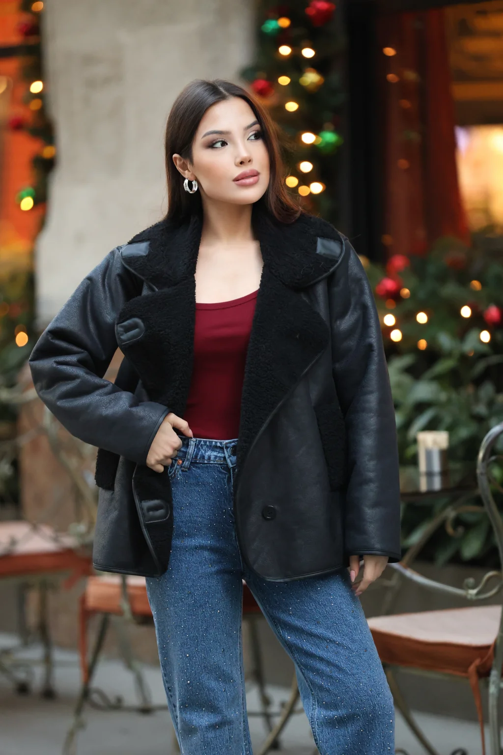 Soğuk havalarda hem şıklığı hem konforu bir arada sunan kürk yaka detaylı suni deri ceket, modern ve zamansız tasarımıyla gardırobunuzun vazgeçilmezi olmaya adaydır. Yumuşak dokulu iç yüzeyi sayesinde sıcak tutarken, dış yüzeyindeki suni deri yapısı ile güçlü ve stil sahibi bir duruş kazandırır.