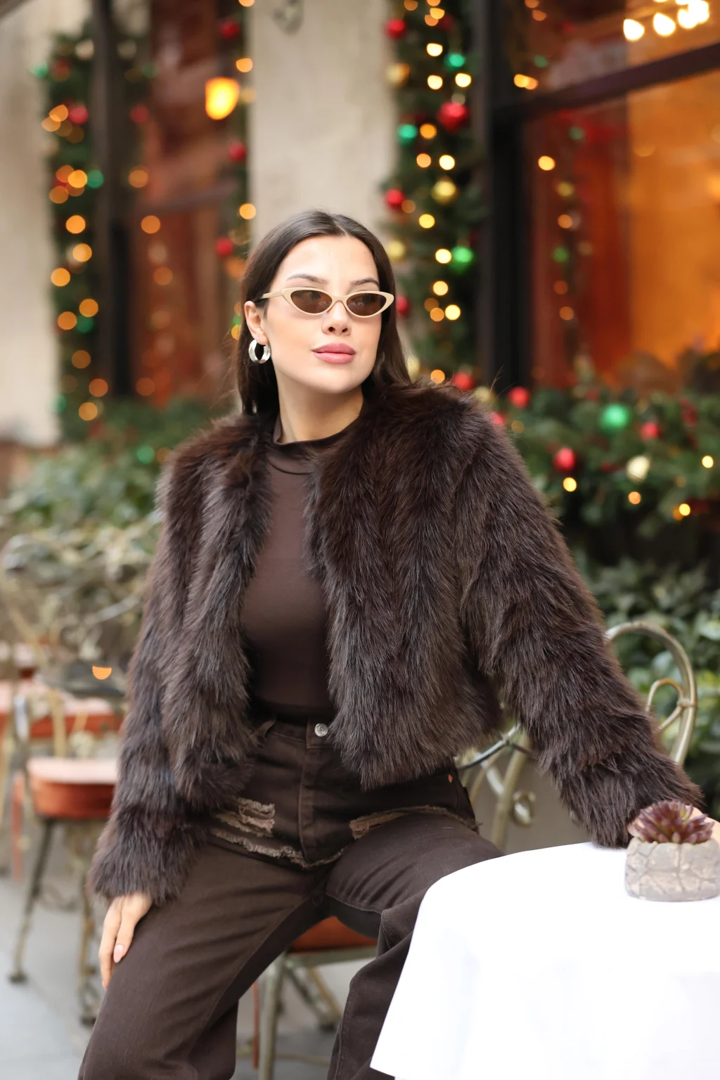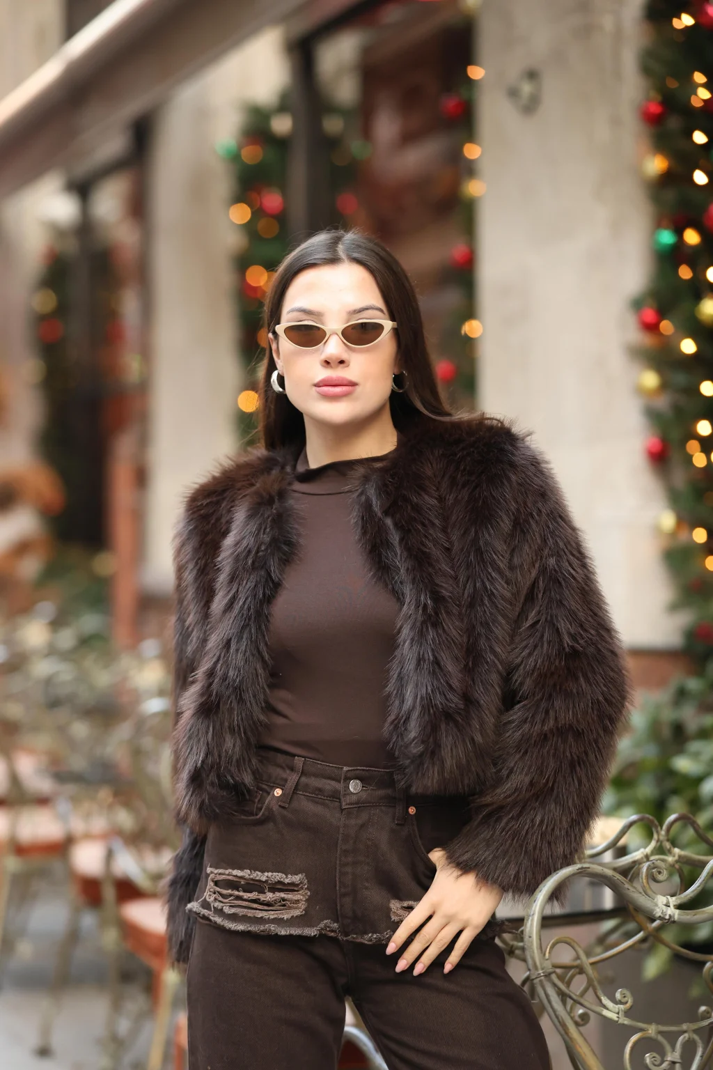 Kadın Suni Kürk Kısa-KAHVE