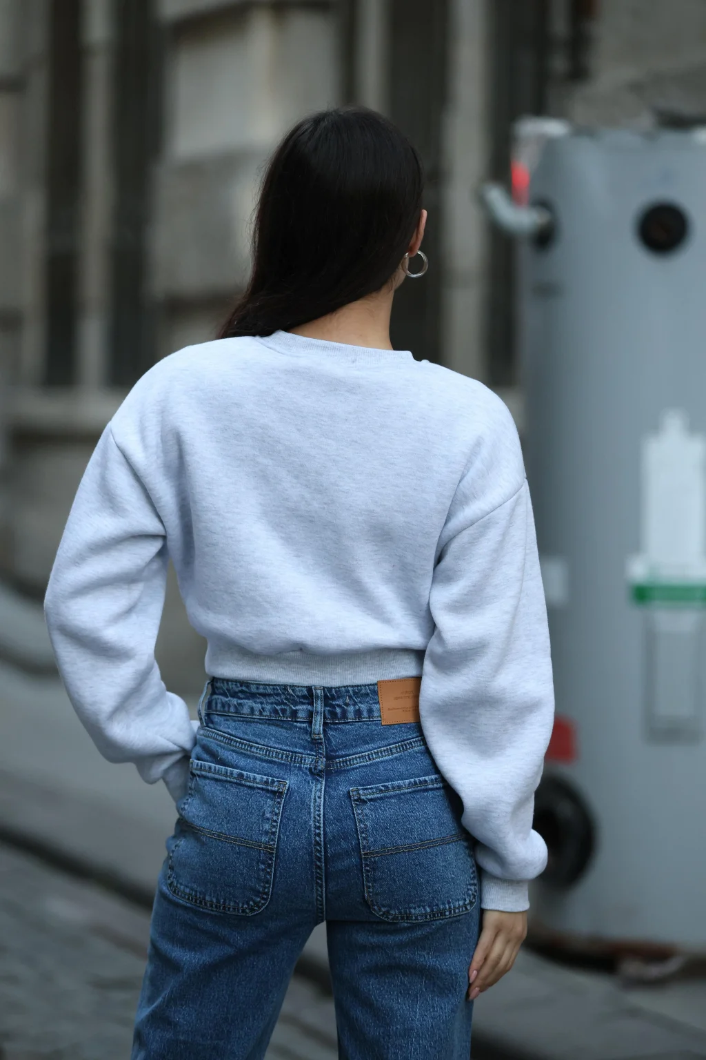 Kadın Üç İplik Şardonlu Oversize Crop Sweatshirt