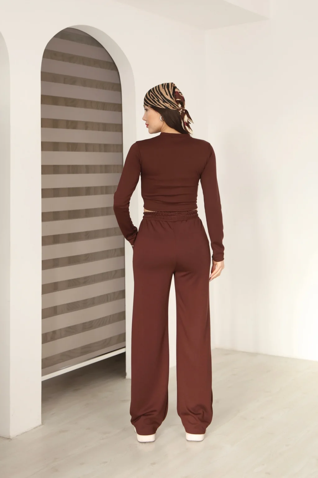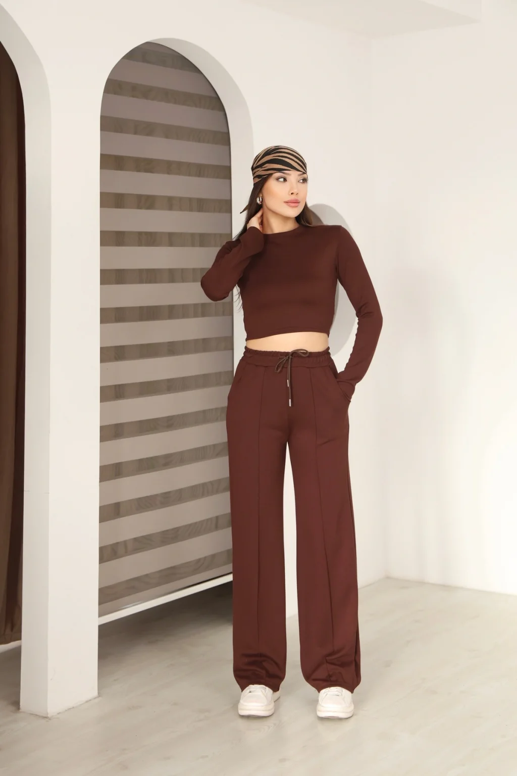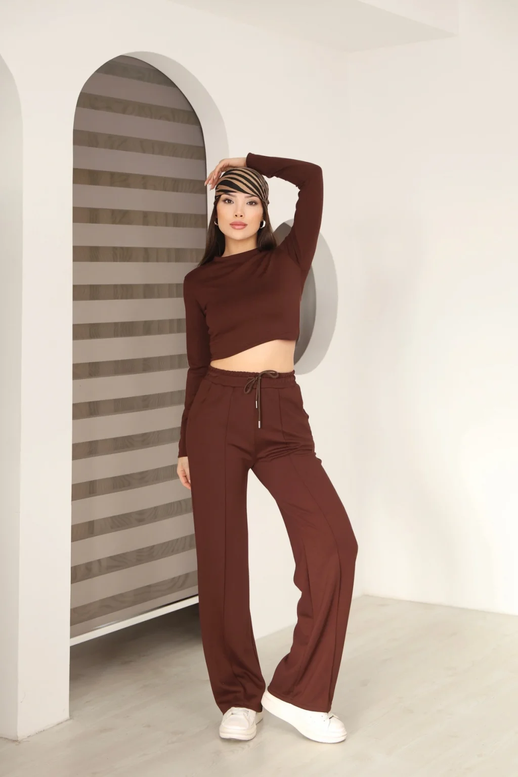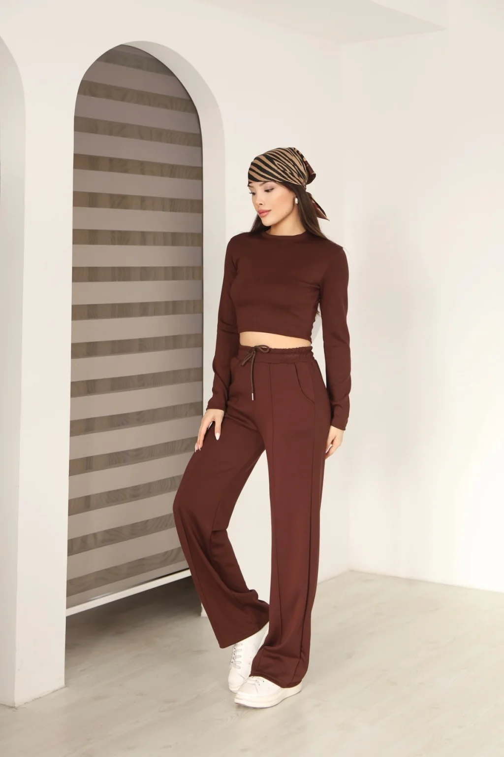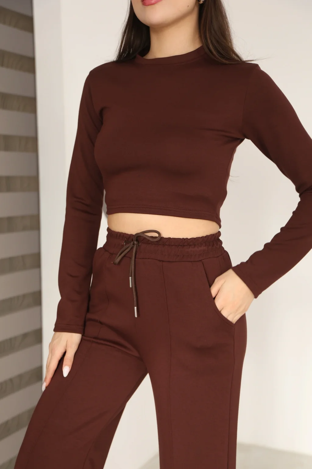 Kadın Üst Crop Altı Çımalı Detaylı Eşofman Takımı