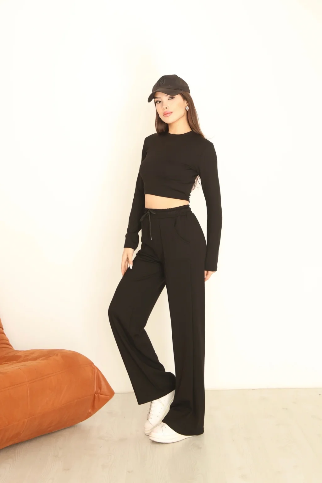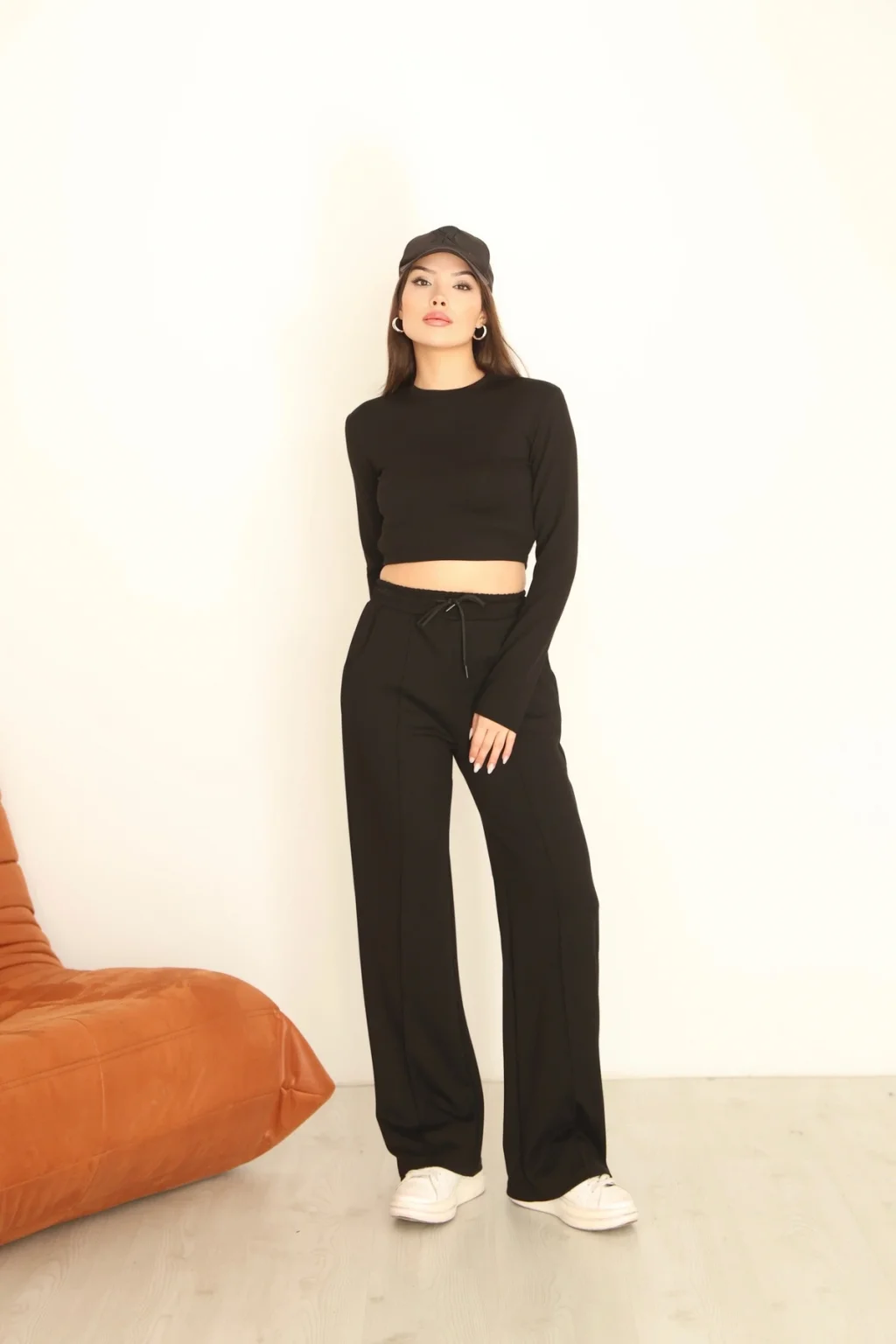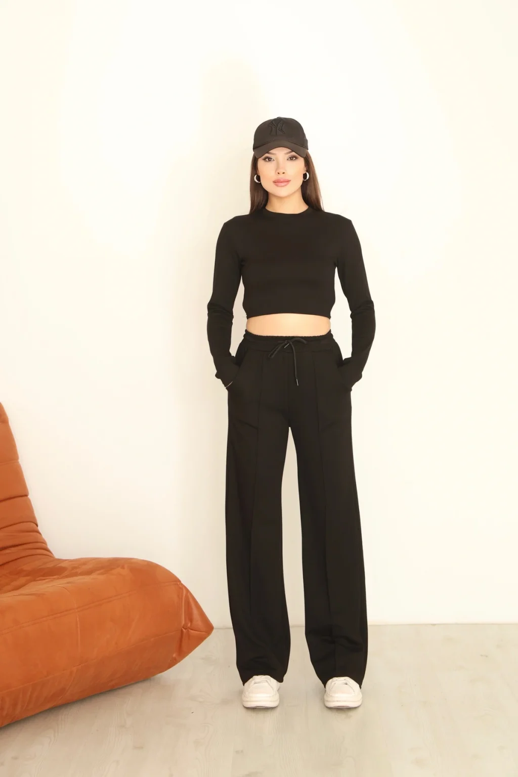 Kadın Üst Crop Altı Çımalı Detaylı Eşofman Takımı