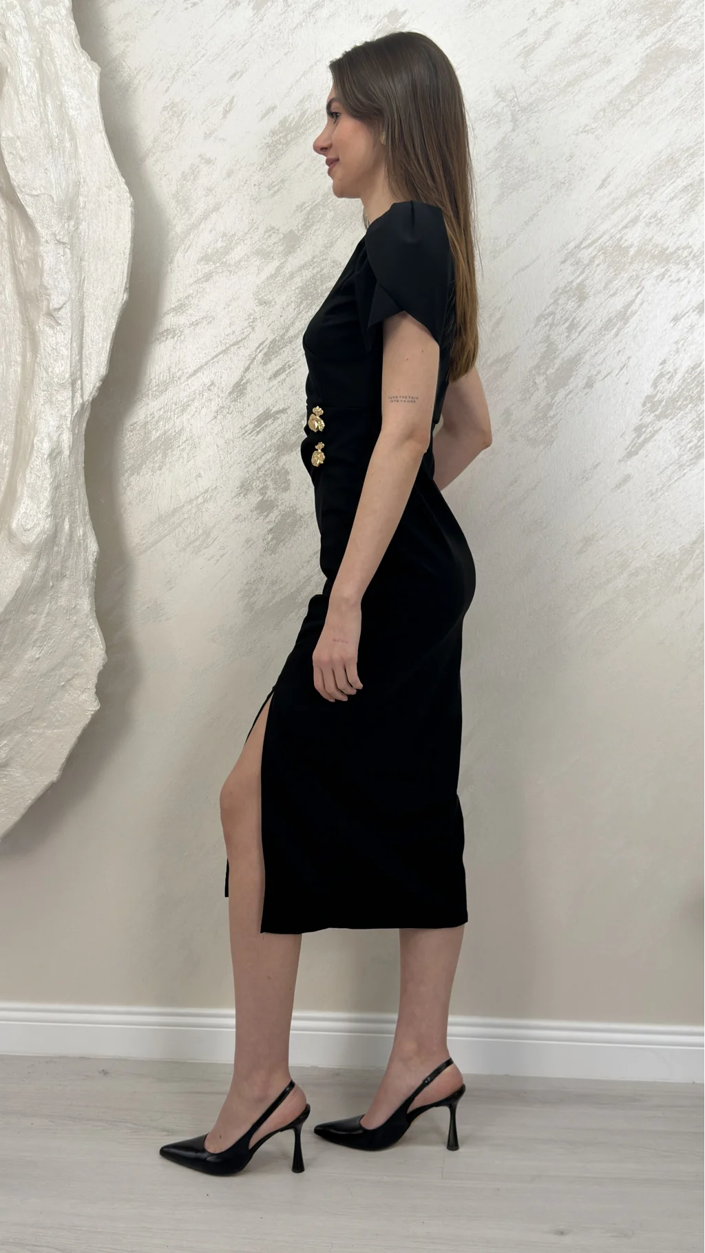 KRUVAZE YAKA ÇİFT TOKALI ELBİSE