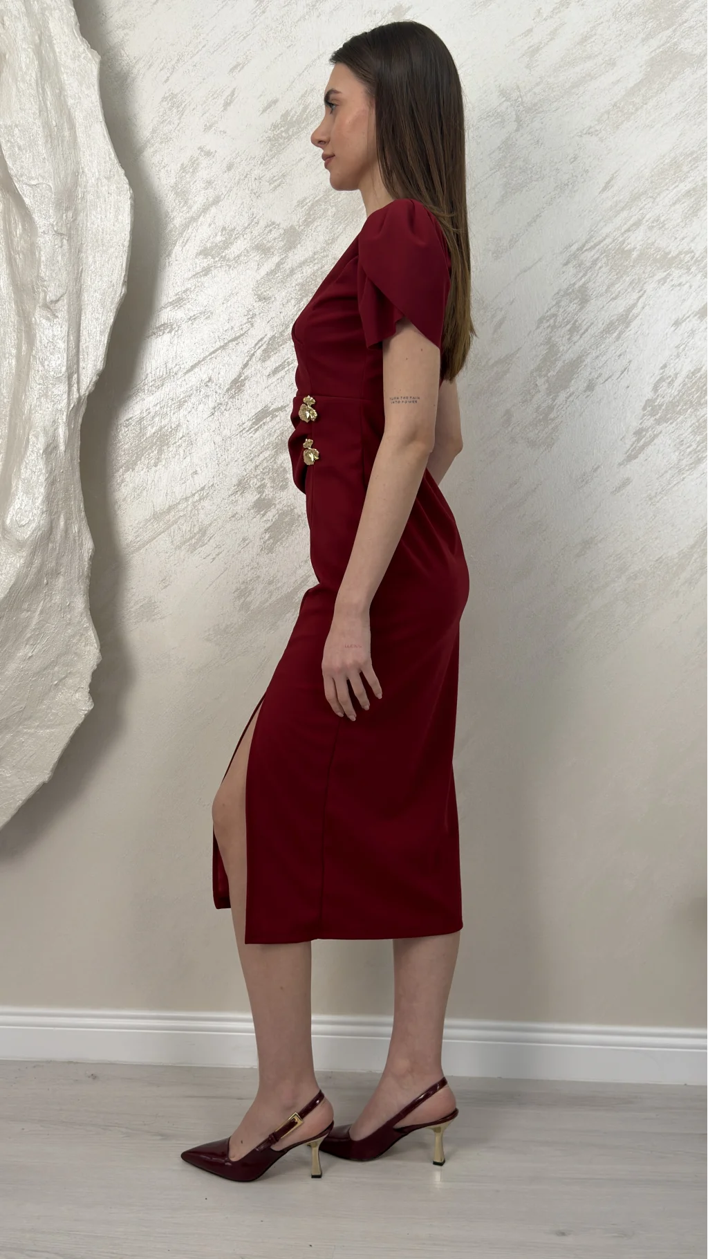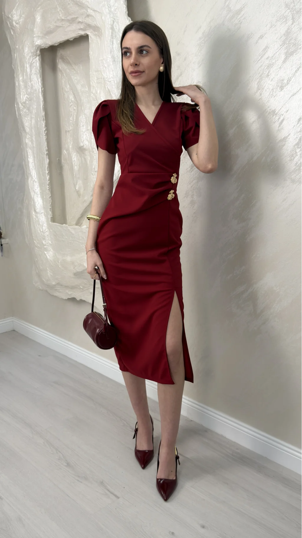 KRUVAZE YAKA ÇİFT TOKALI ELBİSE