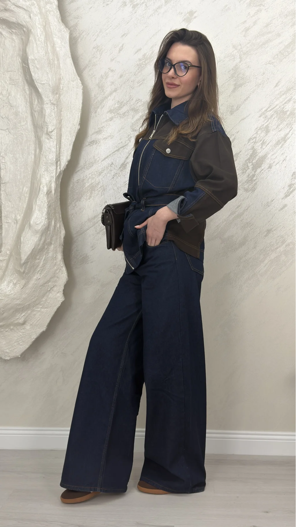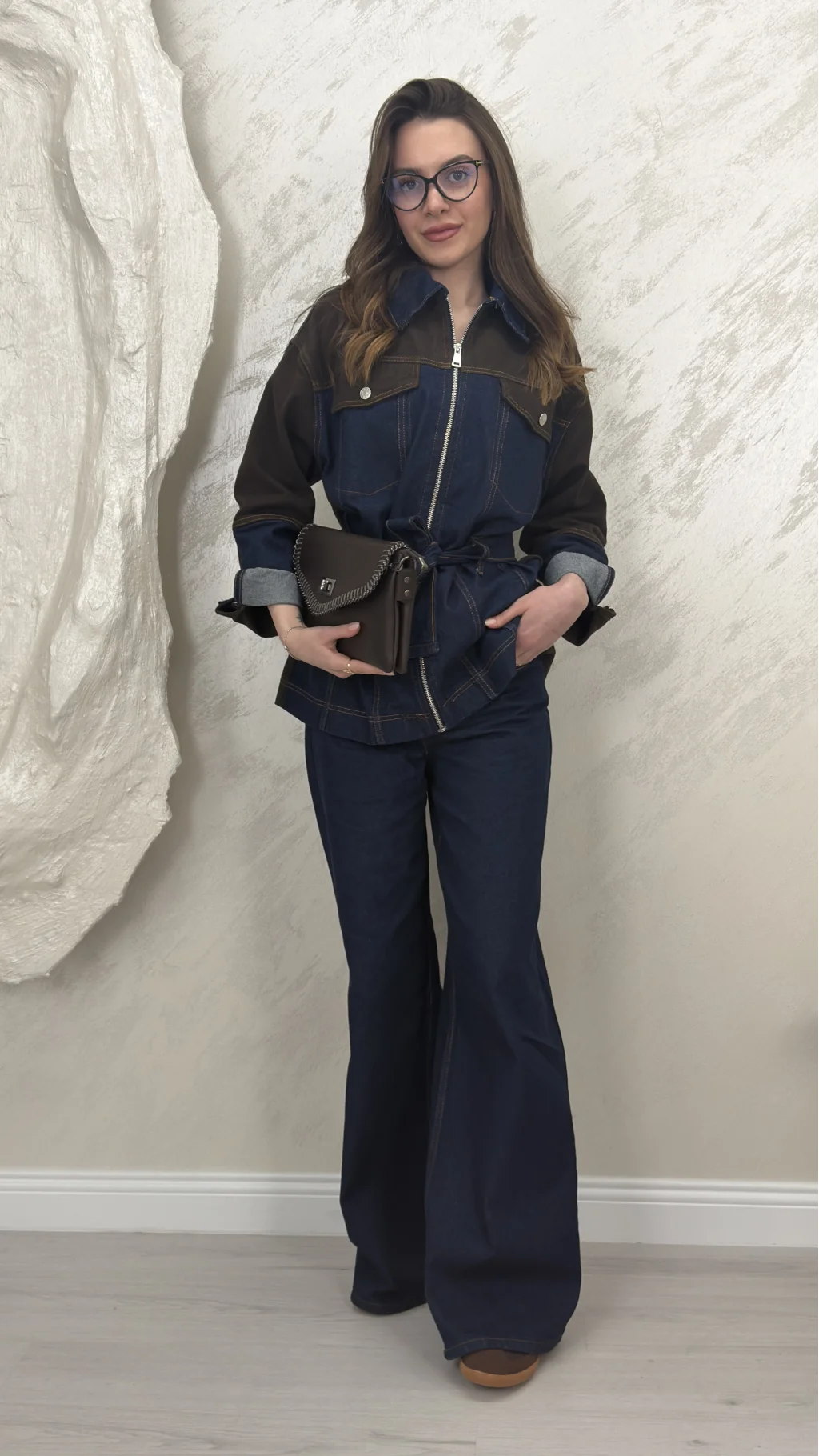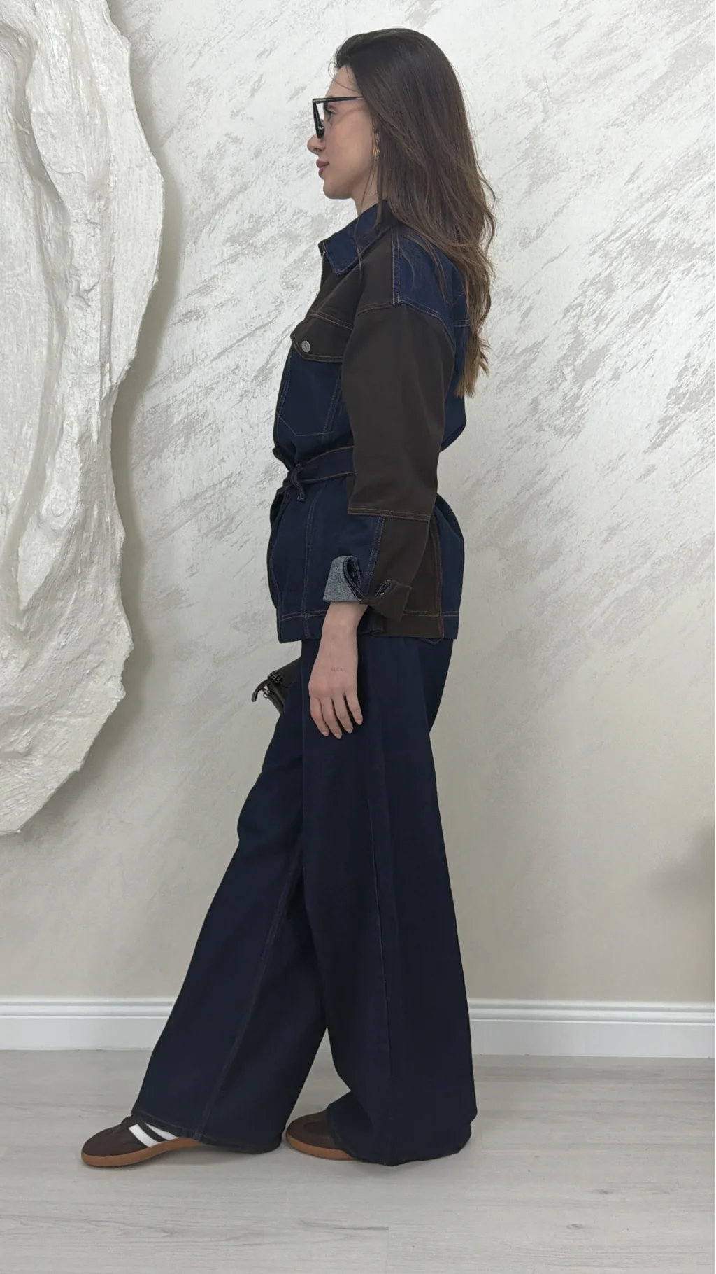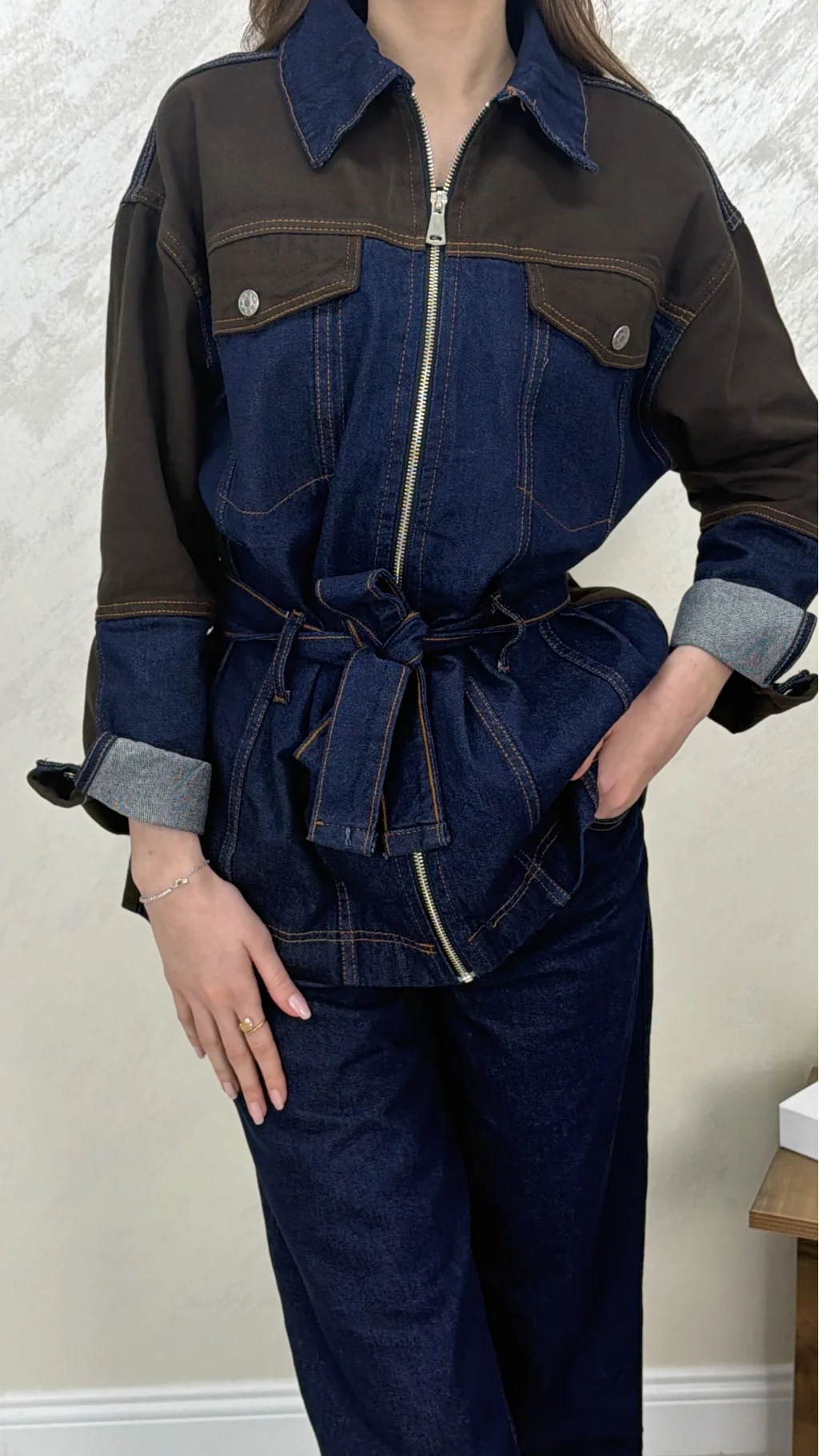 ÇİFT RENK DENİM KUŞAKLI İKİLİ TAKIM