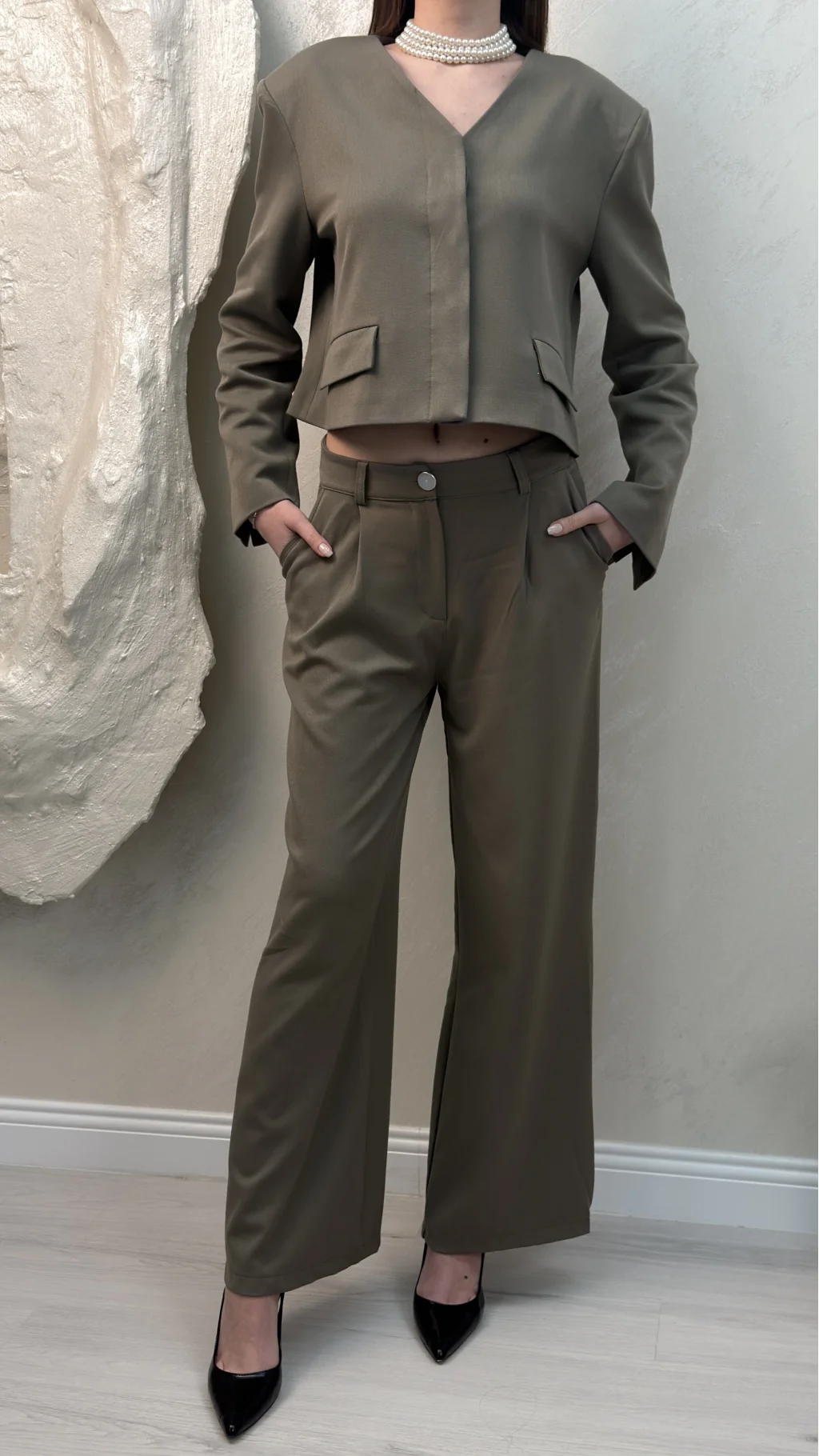 ÇİFT CEP CROP CEKET DETAYLI TAKIM