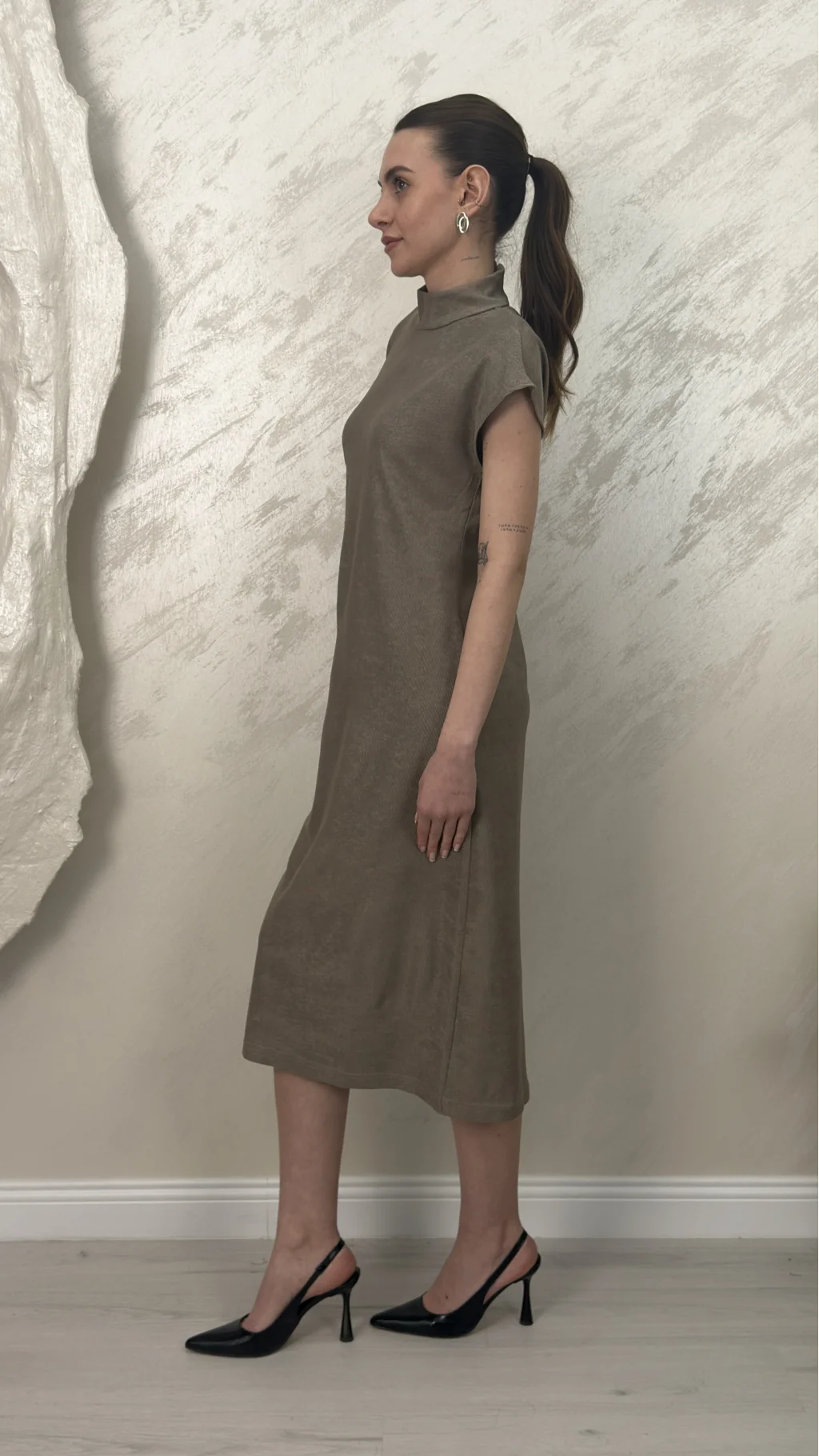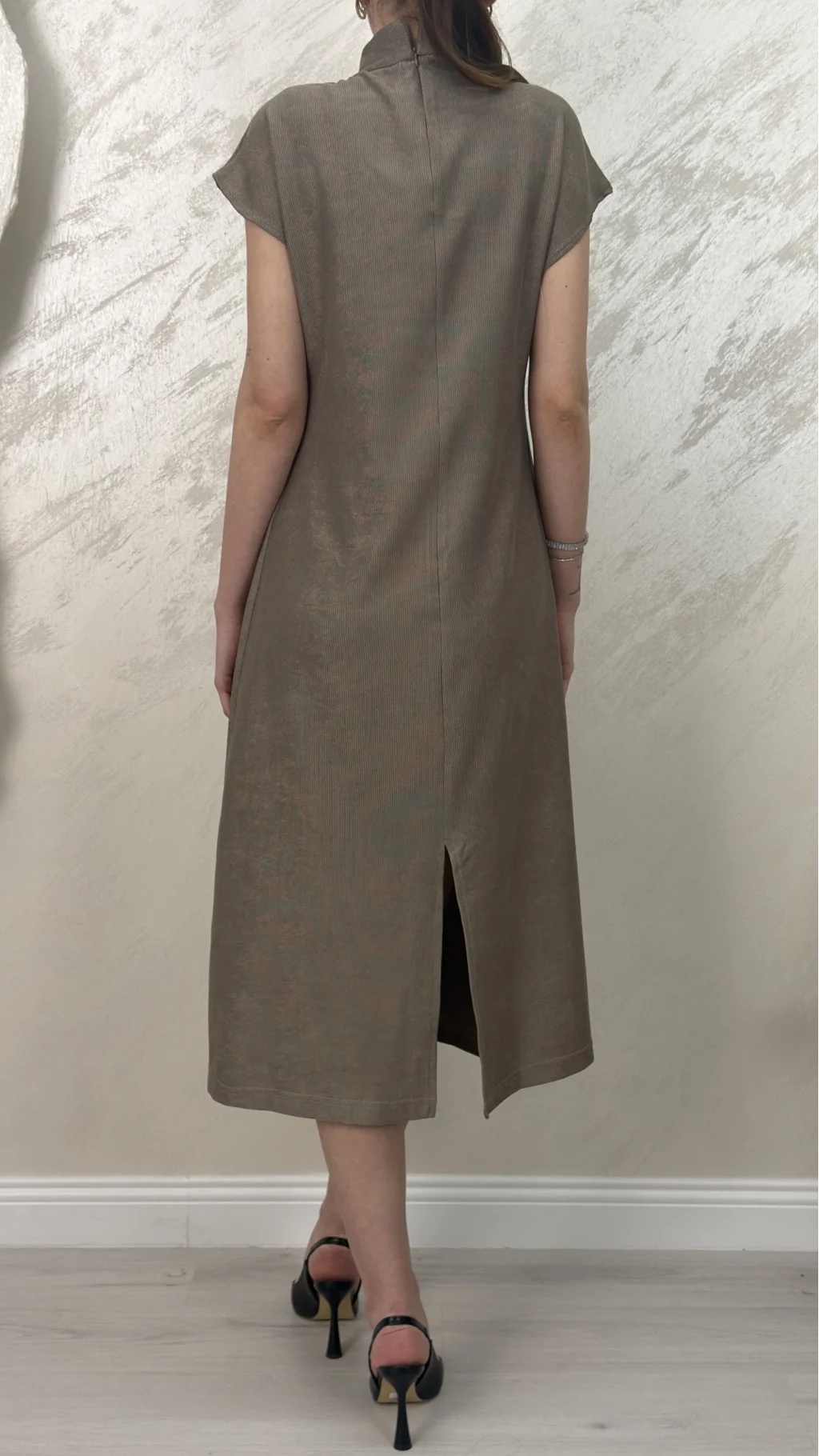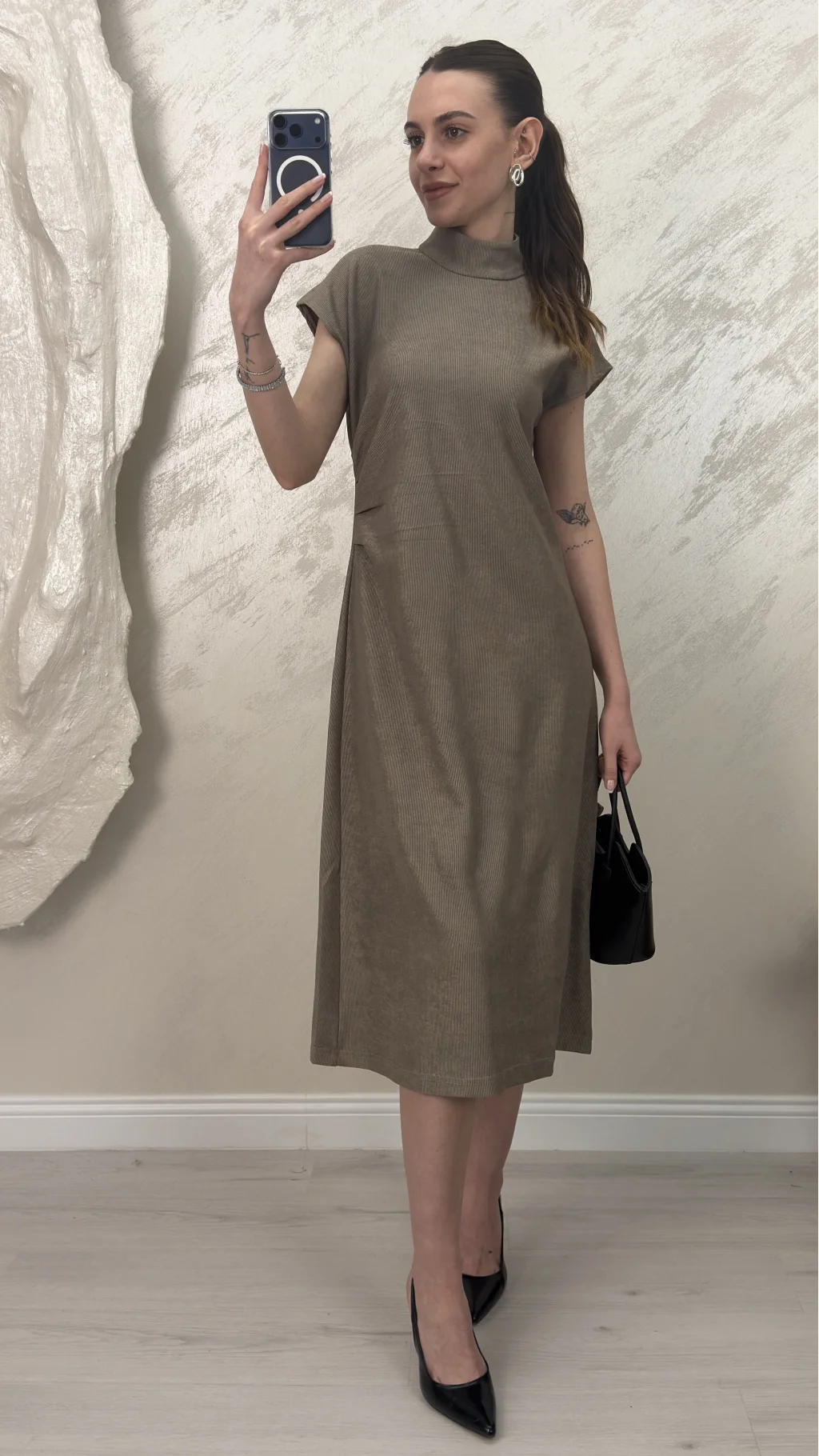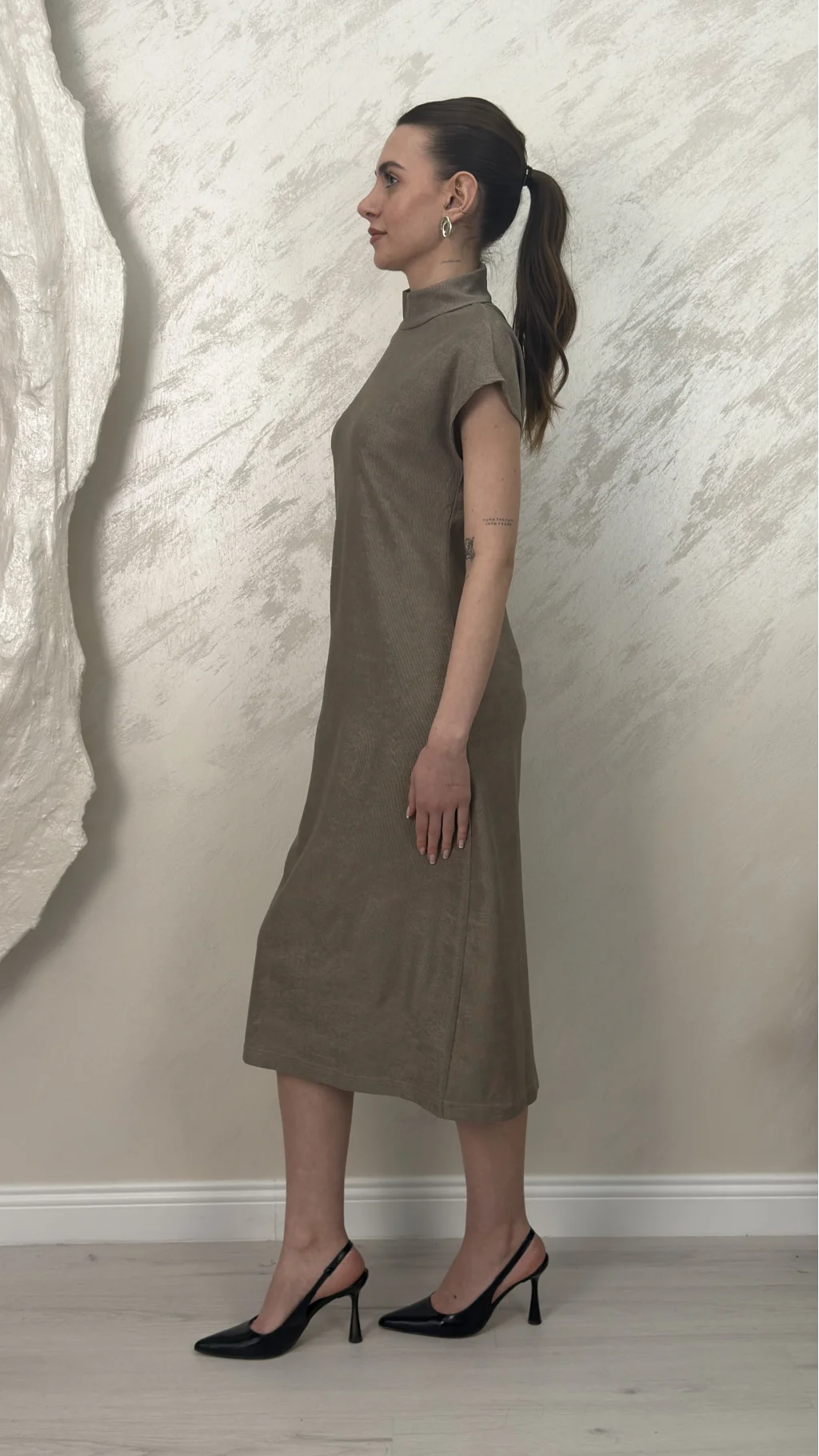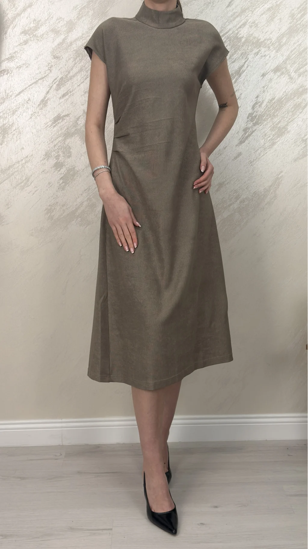 PİLE DETAYLI MUADİL MİDİ ELBİSE
