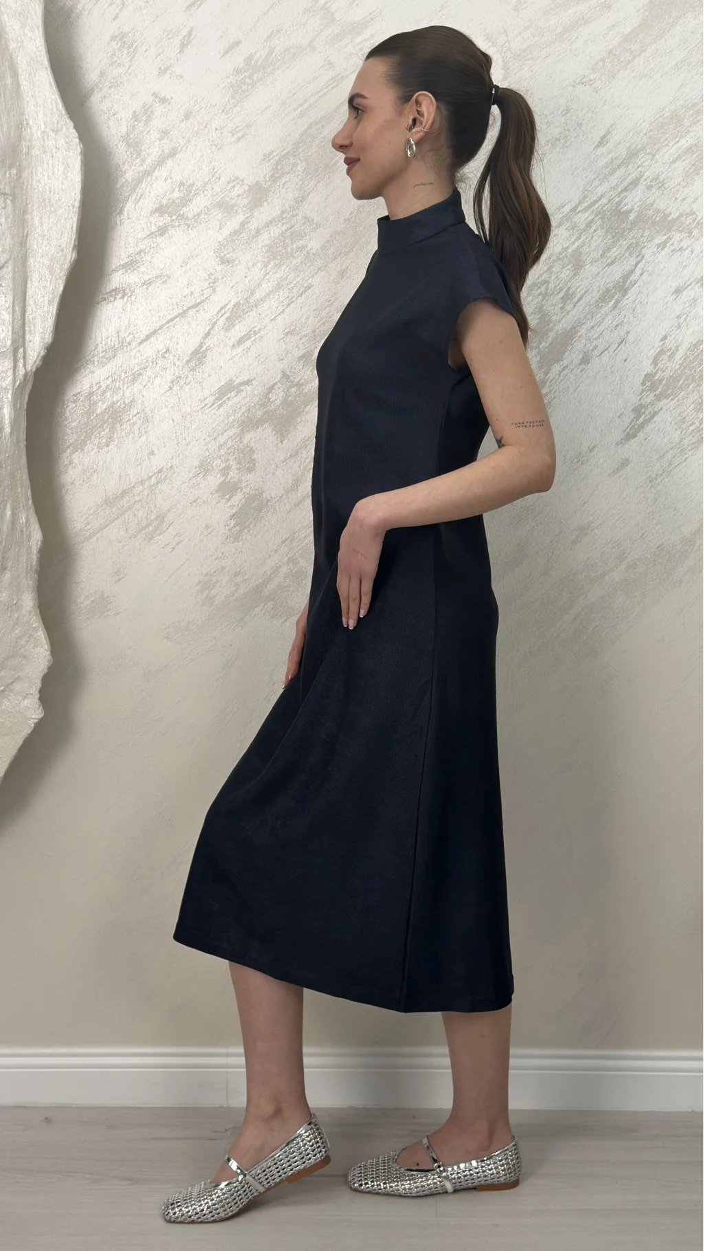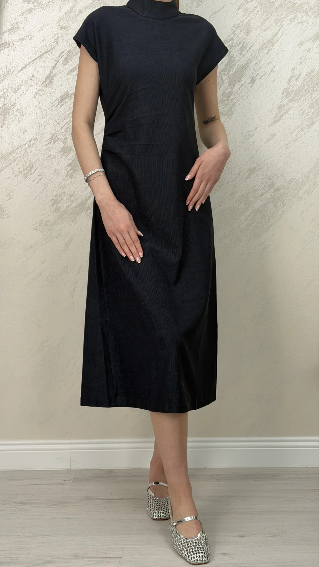 PİLE DETAYLI MUADİL MİDİ ELBİSE
