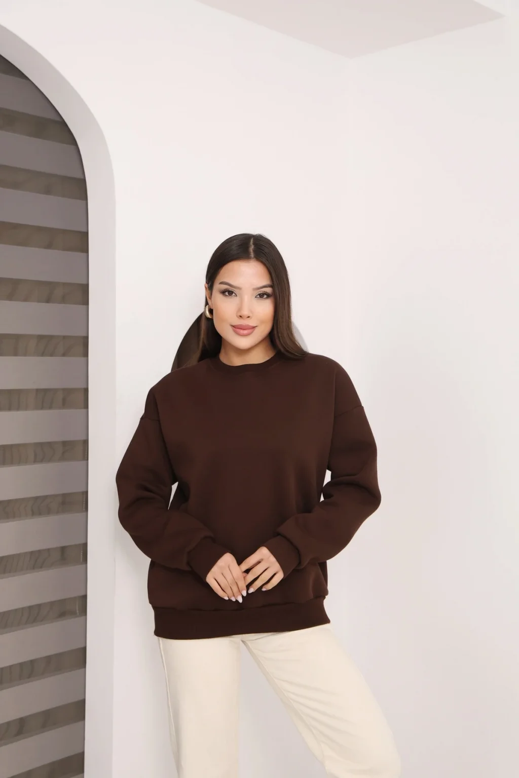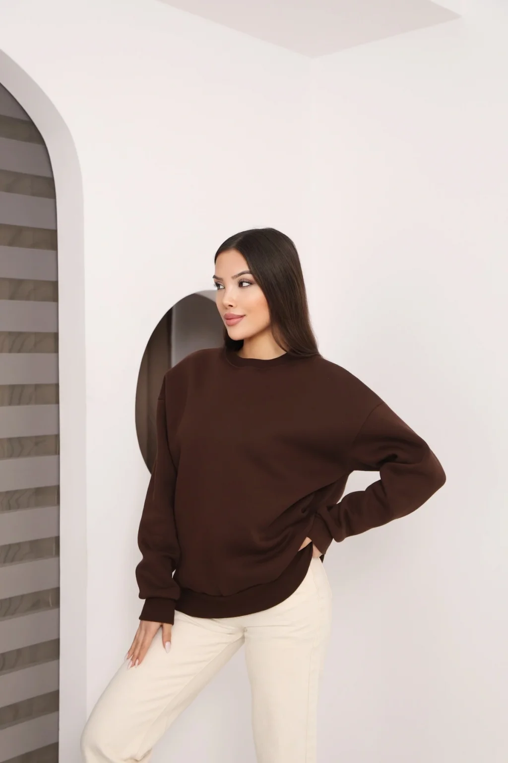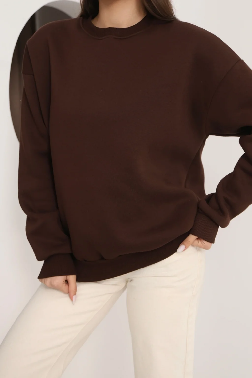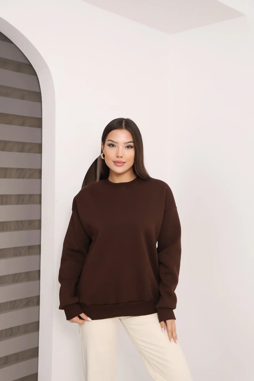 Yumuşak şardonlu iç yapısı sayesinde ekstra sıcak tutan bu üç iplik sweatshirt, rahat kesimi ile günlük kullanımda maksimum konfor sunar.; Bisiklet yaka tasarımı ve sade görünümü sayesinde hem spor hem de günlük kombinlerle kolayca uyum sağlar.; Esnek kumaşı, kaliteli dokusu ve rahat formu ile soğuk havalarda ideal bir tercih olarak öne çıkar.; ; ÜRÜN ÖZELLİKLERİ ; • Model: Kadın Üç İplik Şardonlu Sweatshirt ; • Yaka Tipi: Bisiklet yaka ; • Kalıp: Rahat kalıp / Regular fit ; • Kumaş: Üç iplik – Şardonlu iç yüzey ; • Kullanım Alanı: Günlük kullanım, spor sonrası, dış giyim, casual kombin ; • Konfor: Yumuşak, sıcak tutan ve nefes alabilen dokuda ; • Detay: Kalın ve tok duruşlu kaliteli kumaş ; KUMAŞ BİLGİSİ ; ⚬ %70 Pamuk – %30 Polyester ; • Şardonlu iç yüzey: Yumuşak, sıcak ve peluş hissiyatı verir ; • Kaliteli üç iplik dokuma ; • Kış ve sonbahar için uygundur ; • Formunu korur, kolay deforme olmaz ;