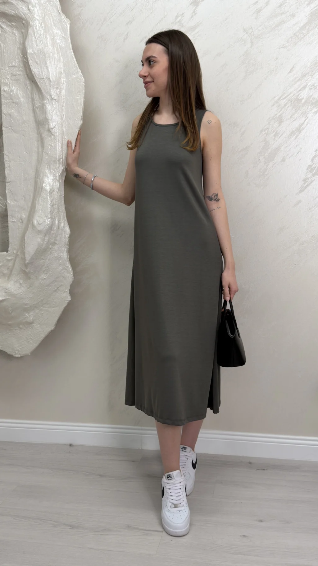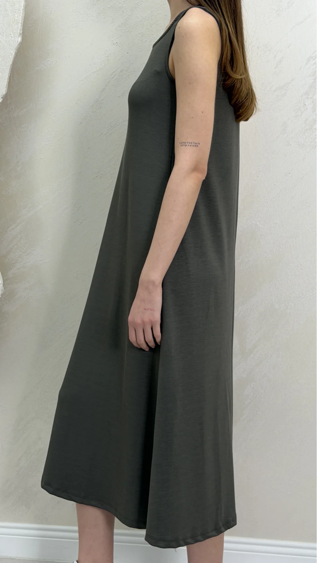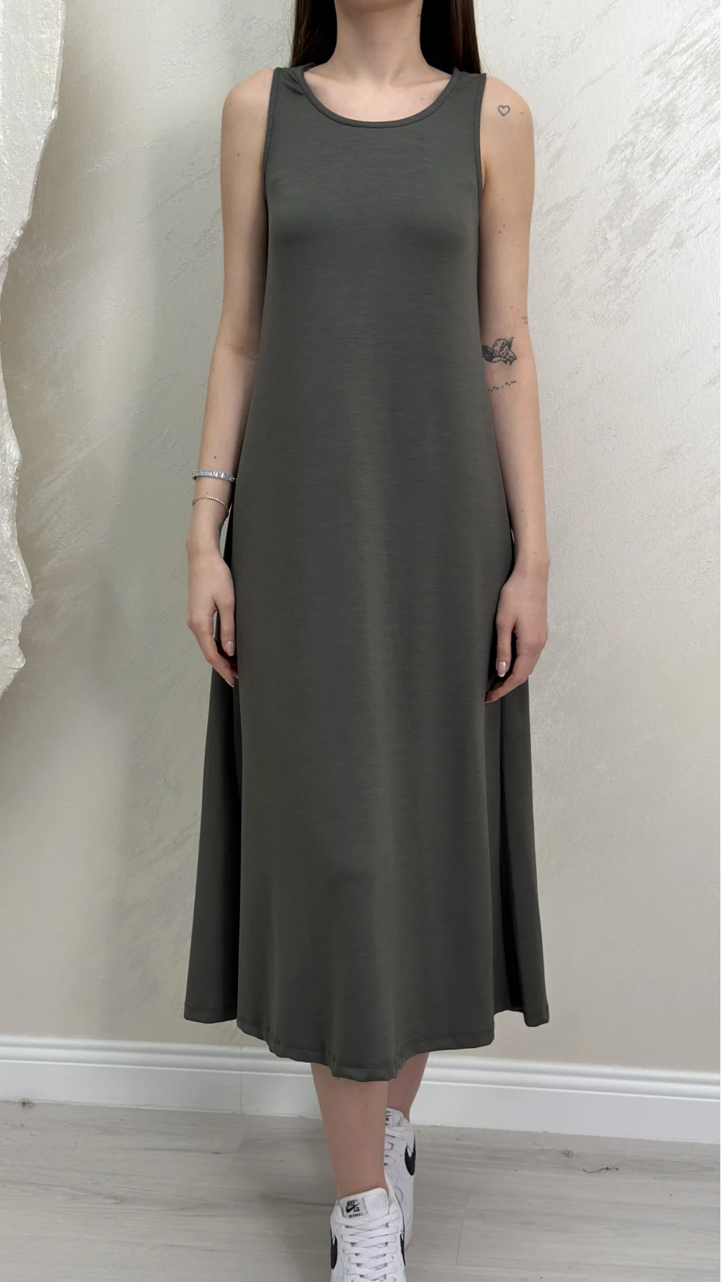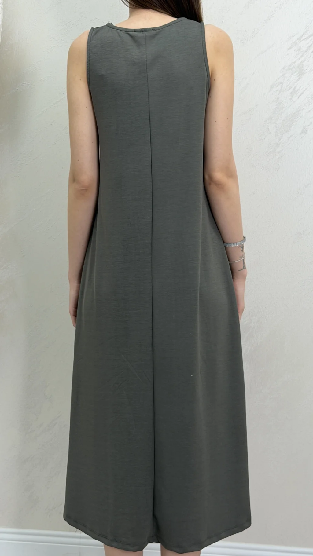 Uzun Askılı Modal Kumaş Elbise- Yağ Yeşili