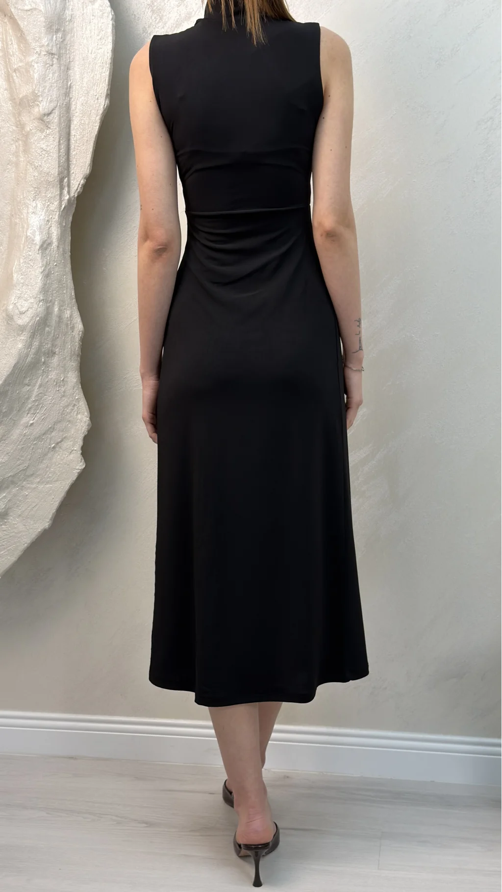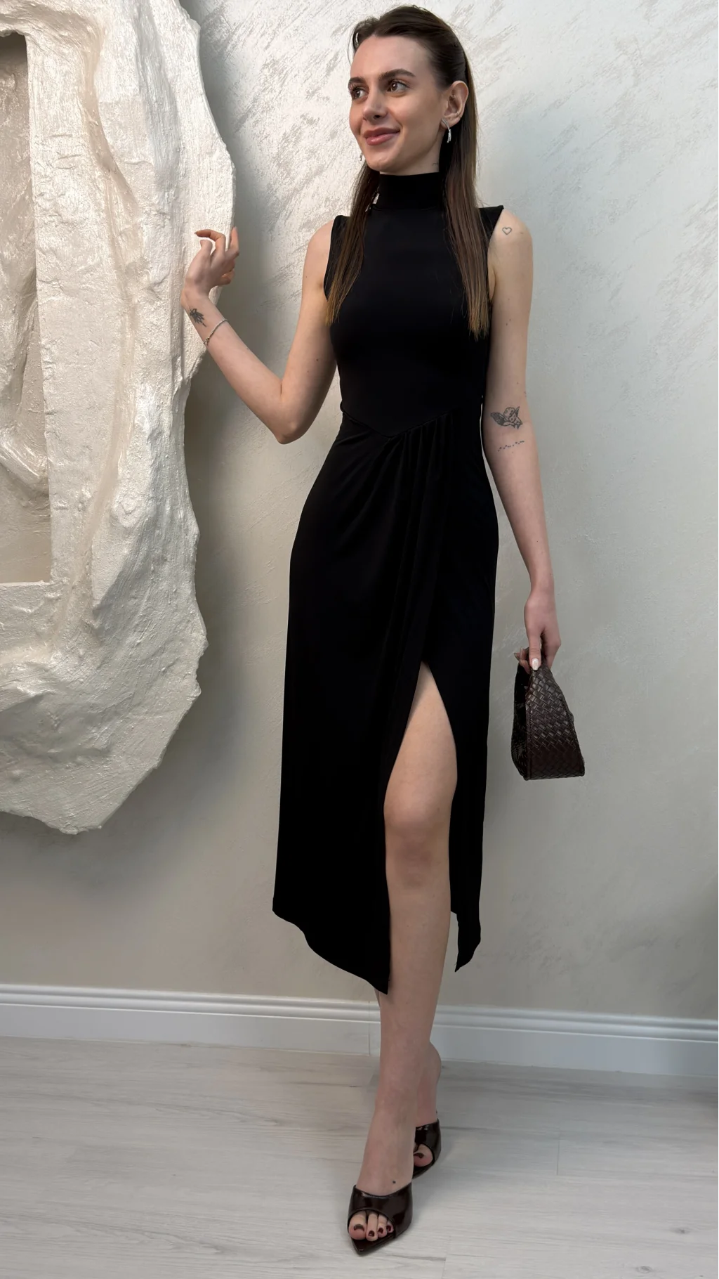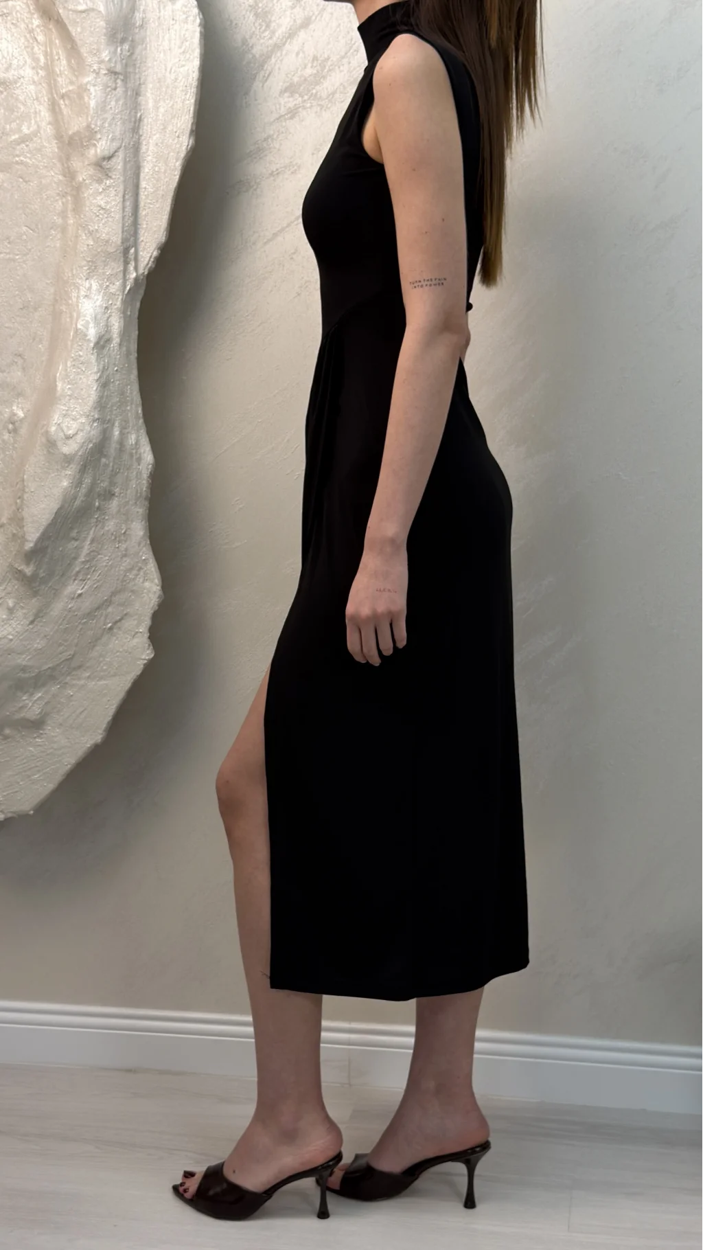 YARIM BALIKÇI YAKA OMZU AÇIK SANDY ELBİSE